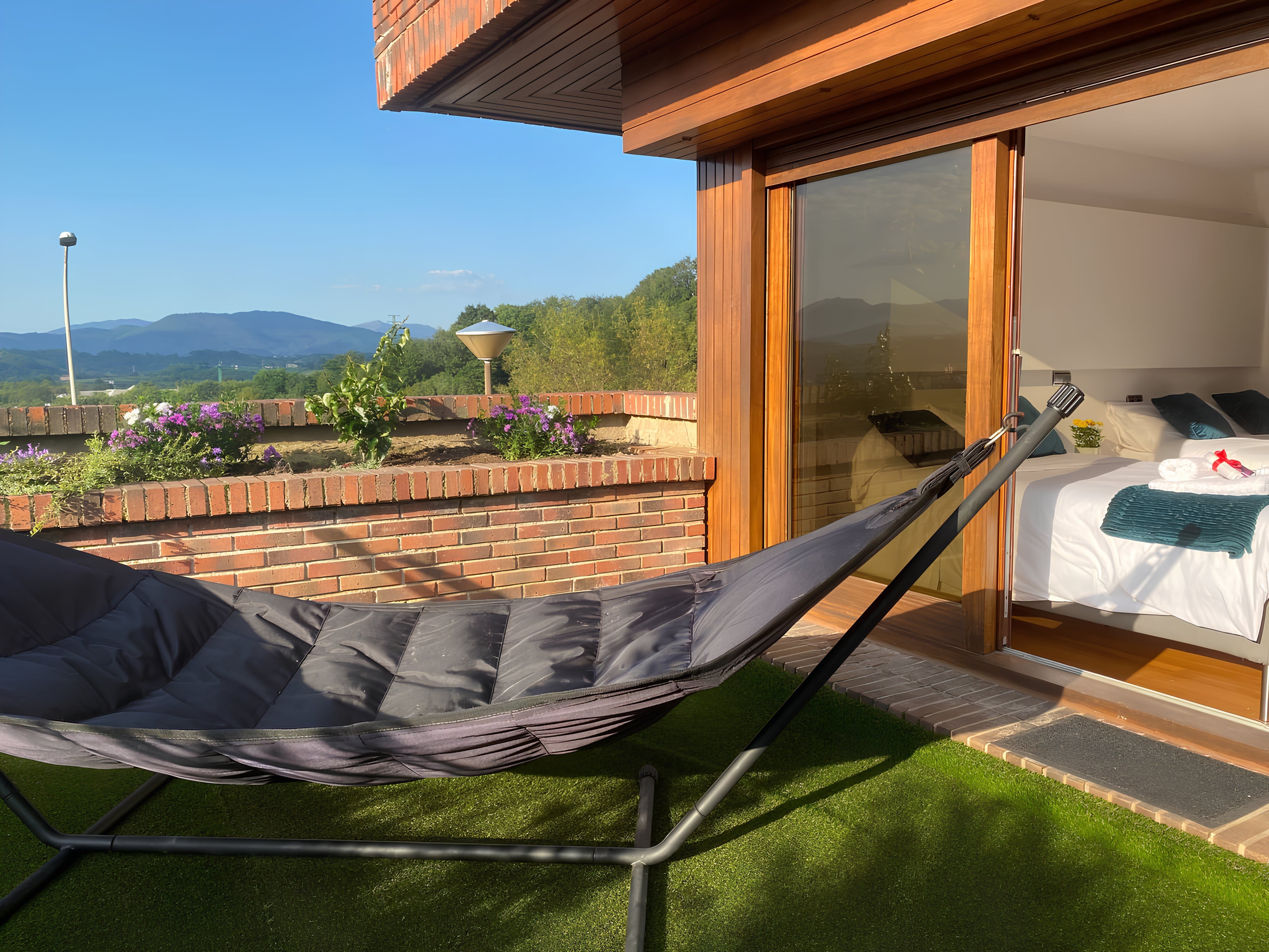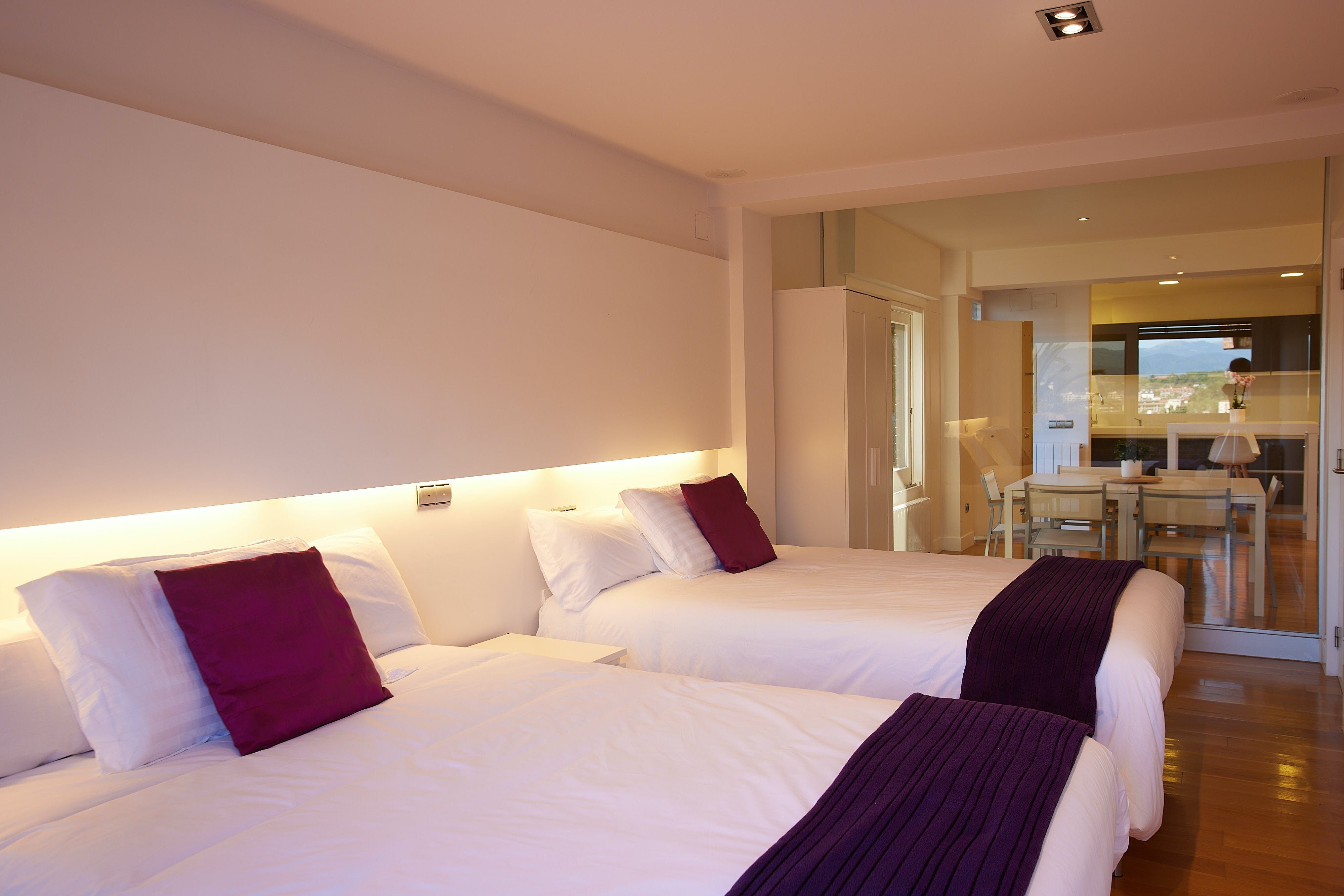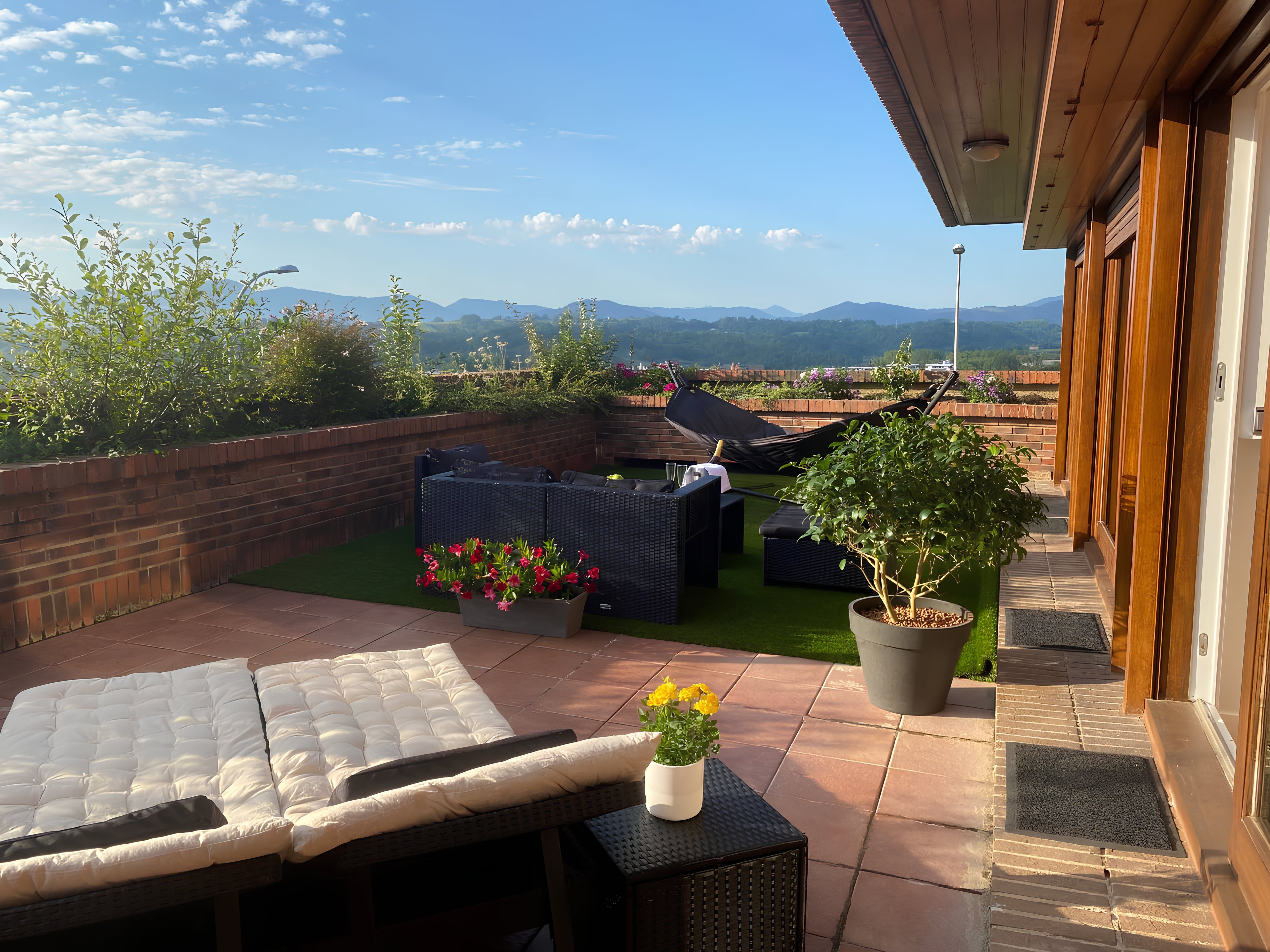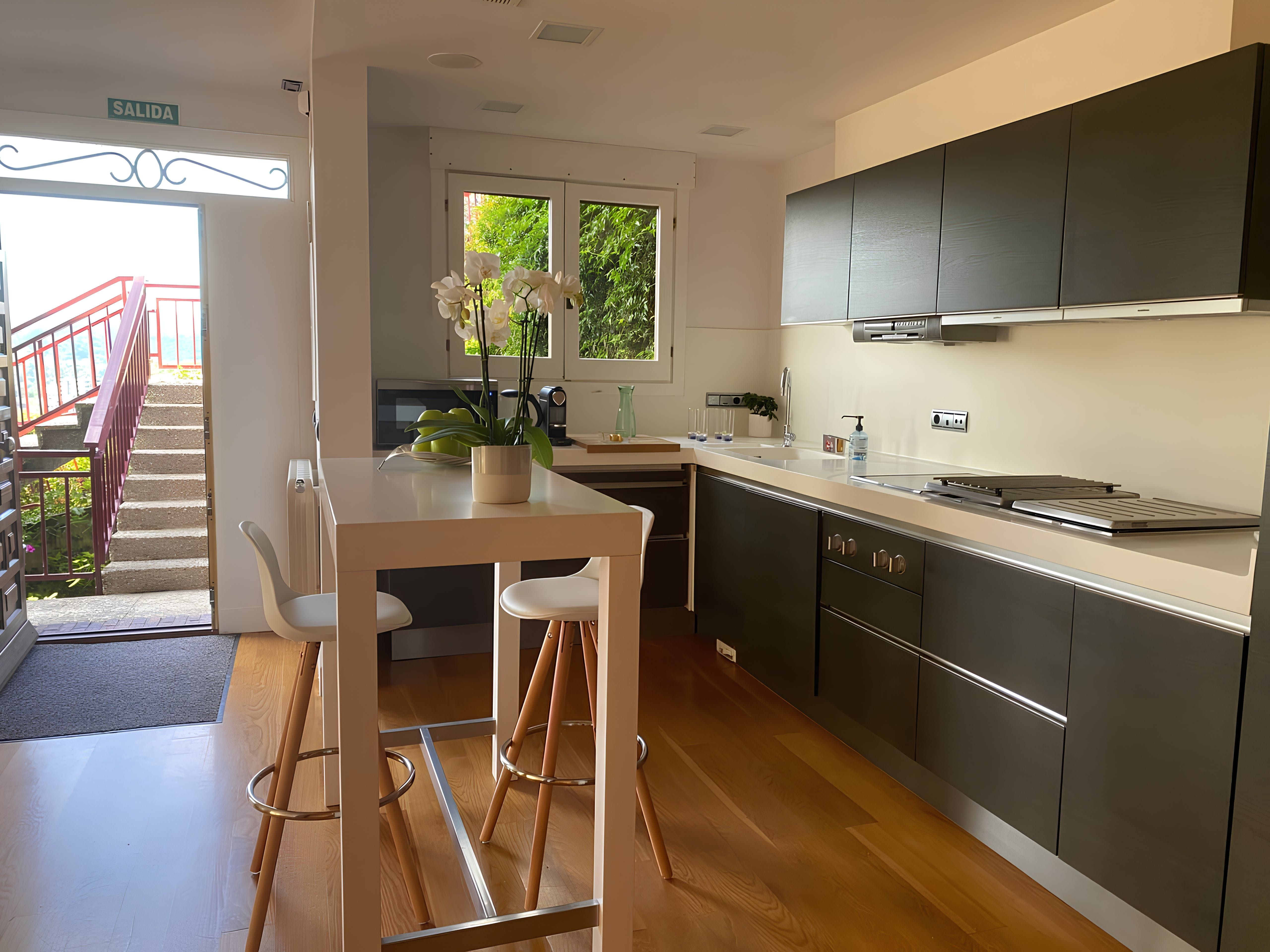 Perched in the hills of the Ondarreta neighbourhood, this apartment opens its doors to a refreshing city stay. Outside, you can admire the mountain views while relaxing on the private terrace. There is also plenty of space across the rooms to stretch out and remote workers will appreciate the dedicated office. It’s worth noting there is no private parking here, but free street parking is available nearby and there are great public transport links. You can take the bus or walk to La Concha Beach (less than 2 kilometres away), and the Monte Igueldo funicular is also within easy reach.