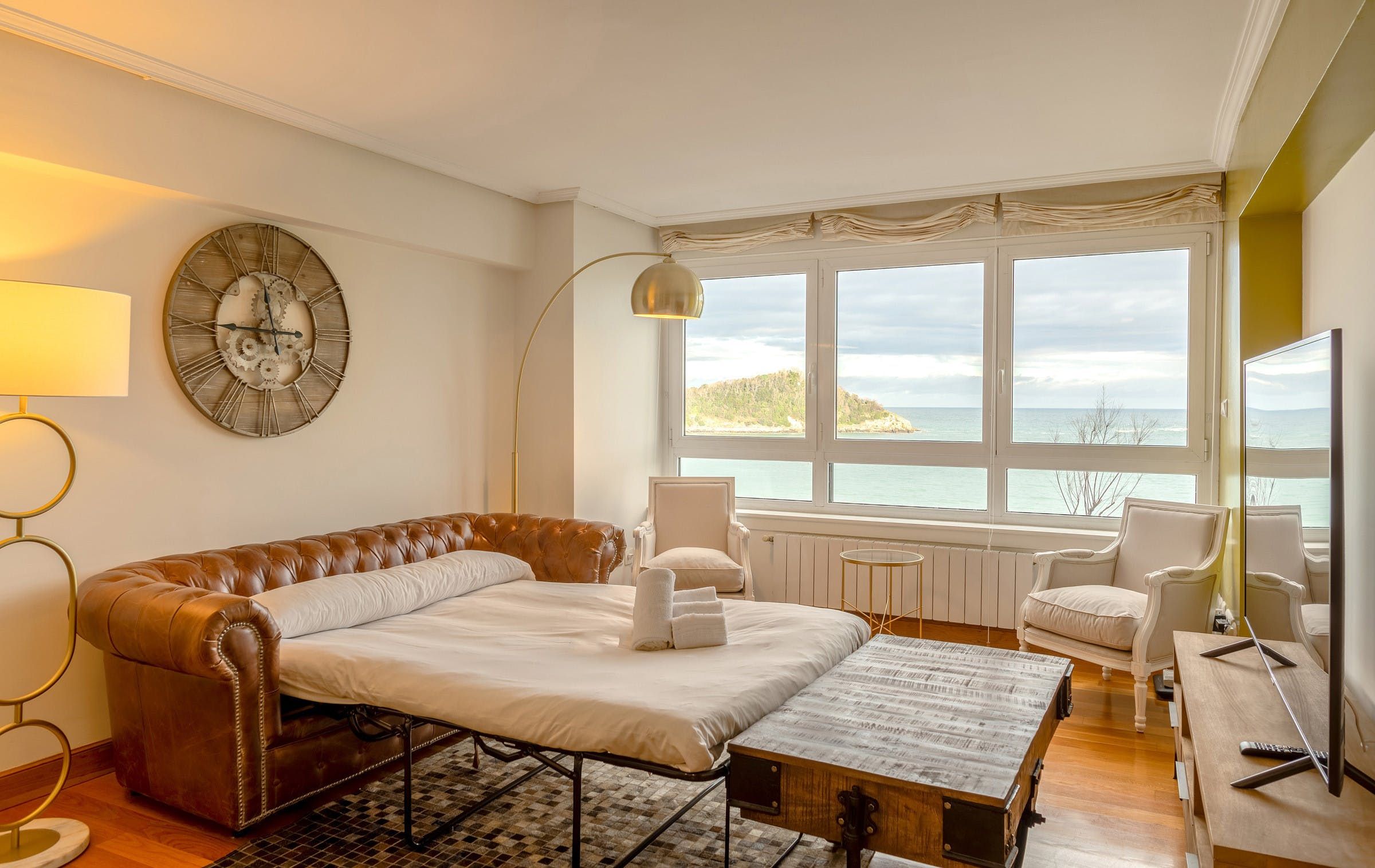 A homely apartment in the centre of Donostia–San Sebastián, this home makes for a comfortable base from which to explore the city and the Basque coast. The interior offers plenty of space to unwind amongst the eclectic and industrial designs, but the sea views are the main draw here – and since the living room and both bedrooms are seafront-facing, every guest can enjoy the rolling waves. You'll find everything you need to cook in the kitchen, although San Sebastián’s local pintxos bars and authentic restaurants are just a short stroll away.