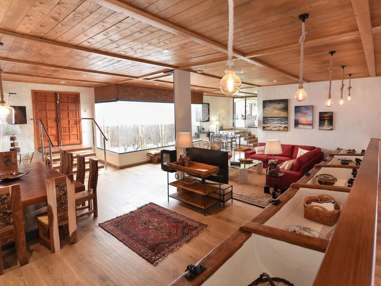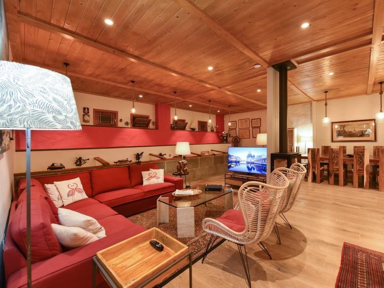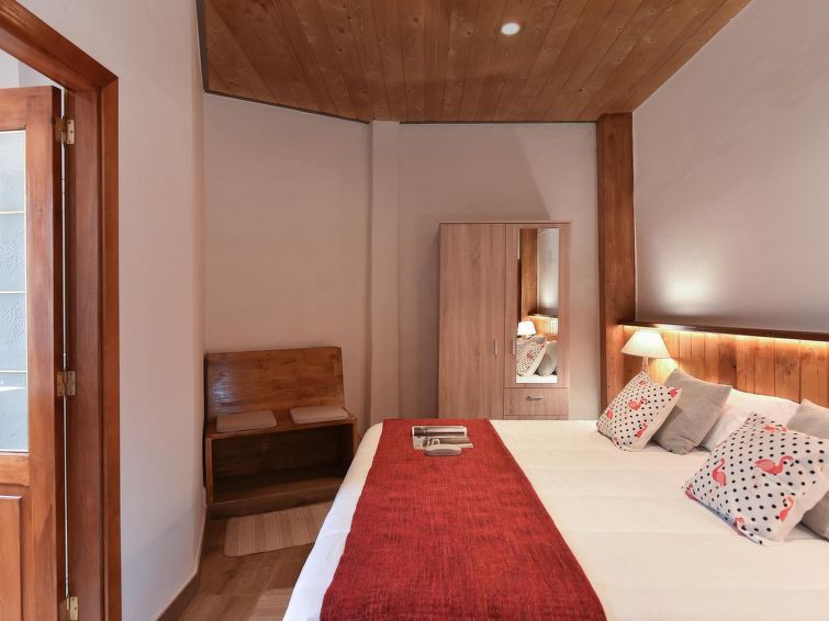"Finca La Casona de Abajo Arucas", 6-room house 280 m2. Comfortable and rustic furnishings: living/dining room with dining table and digital TV. Exit to the patio. 4 rooms, each room with 1 french bed and shower/WC. 1 room with 1 french bed. Kitchen (oven, dishwasher, 4 ceramic glass hob hotplates, toaster, kettle, microwave, freezer, electric coffee machine) with dining table.