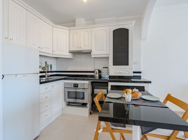 "Balcón del Mar", 2-room apartment 47 m2 on 3rd floor, south facing position. Object suitable for 2 adults. Spacious and bright, practical and comfortable furnishings: living room with digital TV. Exit to the terrace. 1 large room with 2 beds (90 cm, length 190 cm). Open kitchen (oven, 4 ceramic glass hob hotplates, toaster, kettle, freezer, electric coffee machine, Capsules for coffee machine (Senseo) extra) with dining table.
