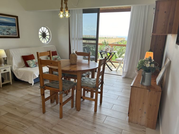 If you're looking for peace and quiet, this holiday home is the perfect choice. The house is situated on a banana farm and has its own entrance. The house is spacious enough to accommodate a large family. It's actually two stories, each with its own entrance. So you have two bathrooms, two spacious living rooms, each with a sofa bed, a kitchenette, and a balcony. The house also has a veranda with a barbecue. At the end of the property is a solarium. Plenty of privacy. Very suitable for naturists.