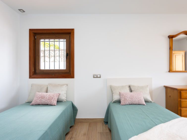 There are three bedrooms on offer. Excellent. The furnishings are okay. The beds are a bit worn. There's a TV, but only Spanish channels. Wi-Fi is available and very fast. We were there in March. Unfortunately, there's no heating, so it gets quite chilly in the evenings. But we would go there again.