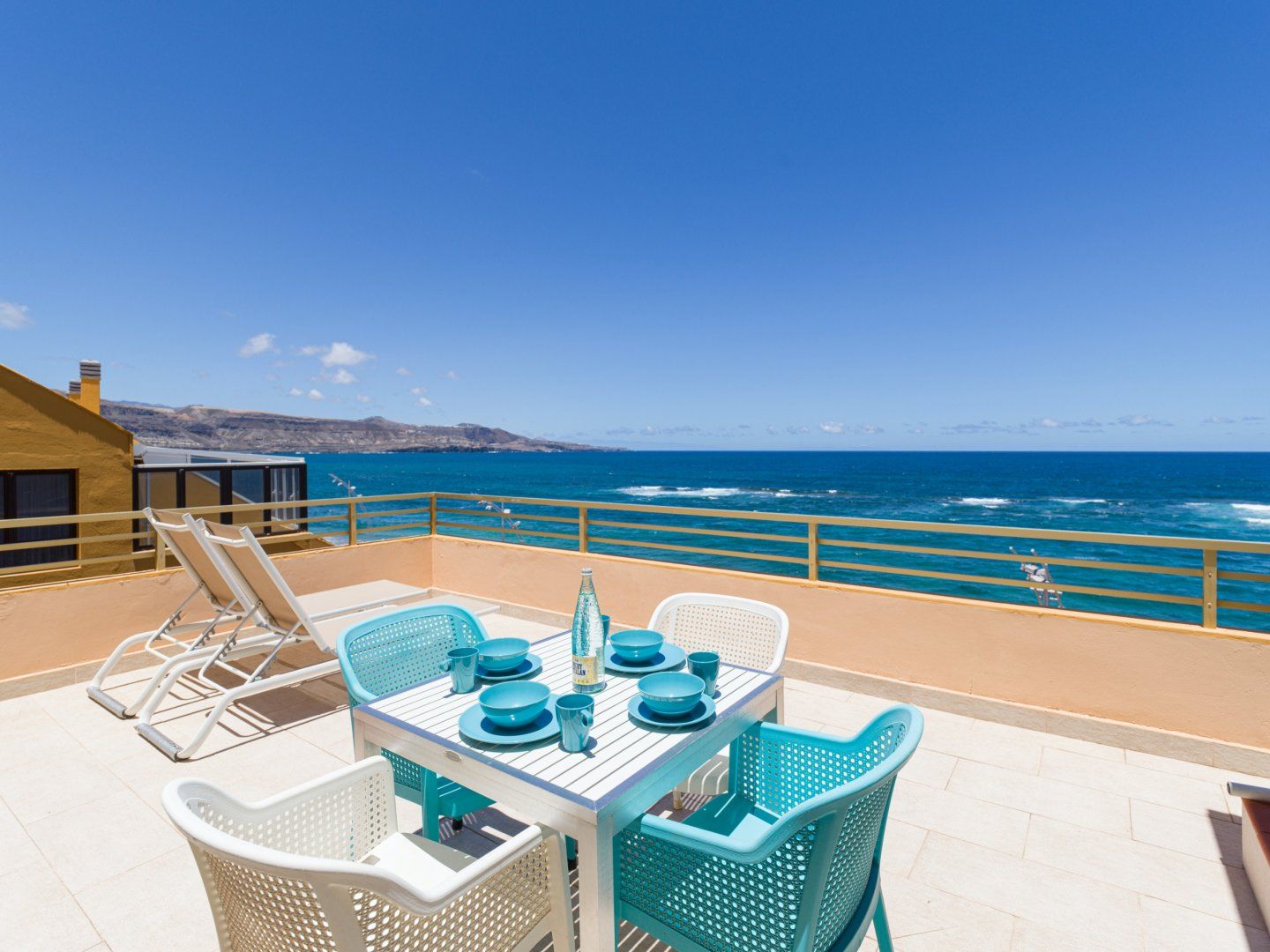 *There's no air conditioning here, but the ocean breeze keeps things cool – it can get pretty windy on the terrace