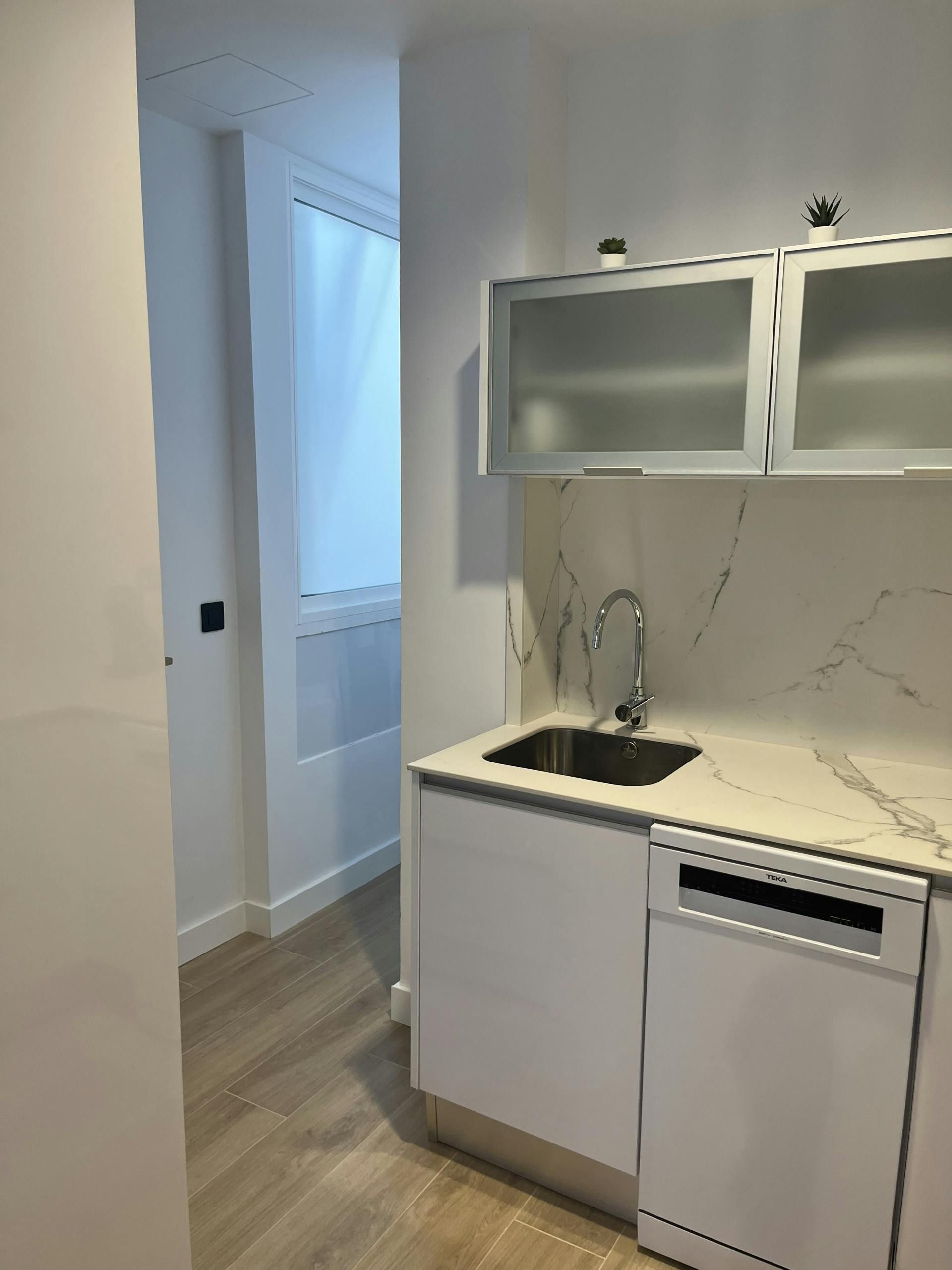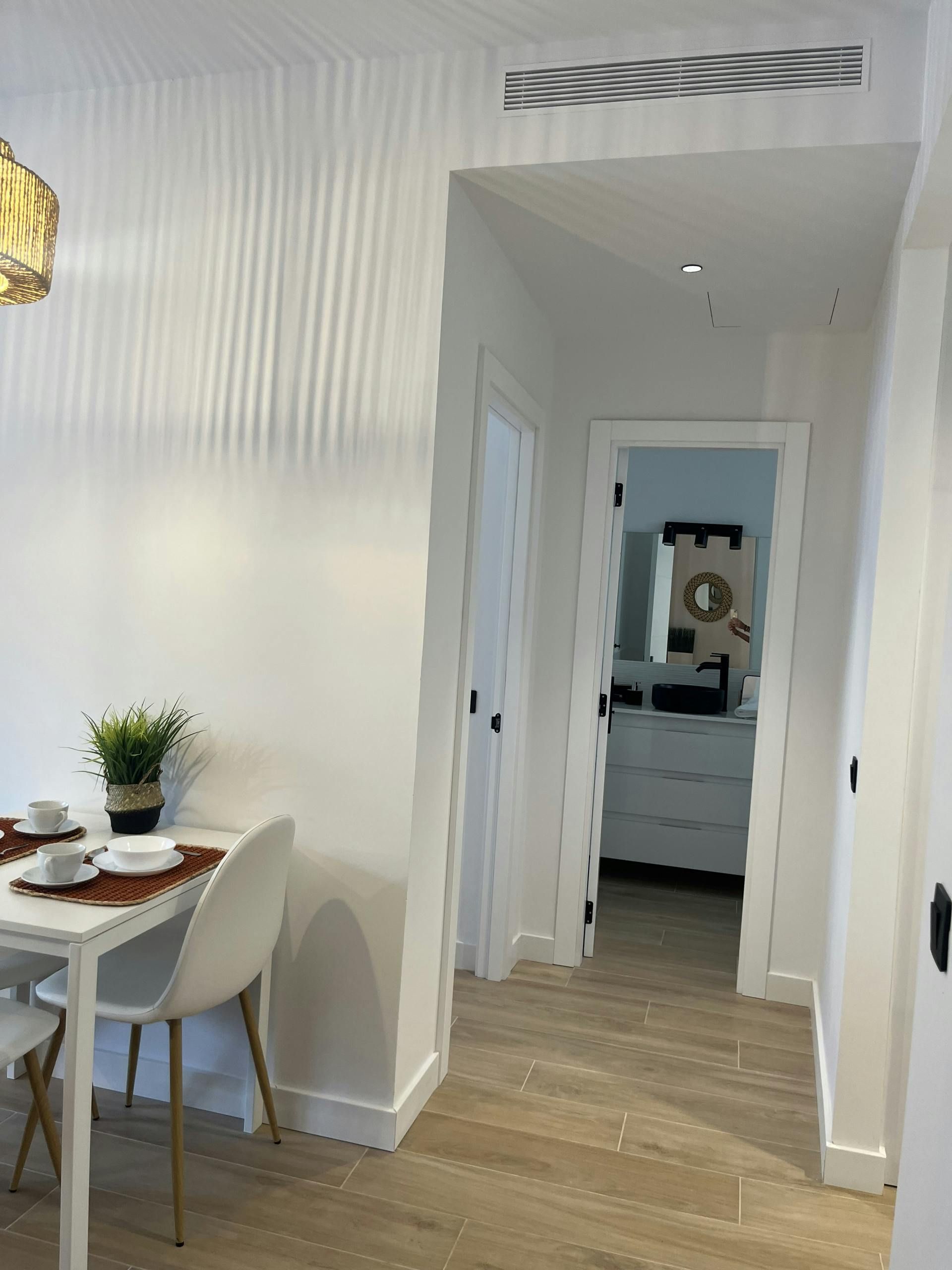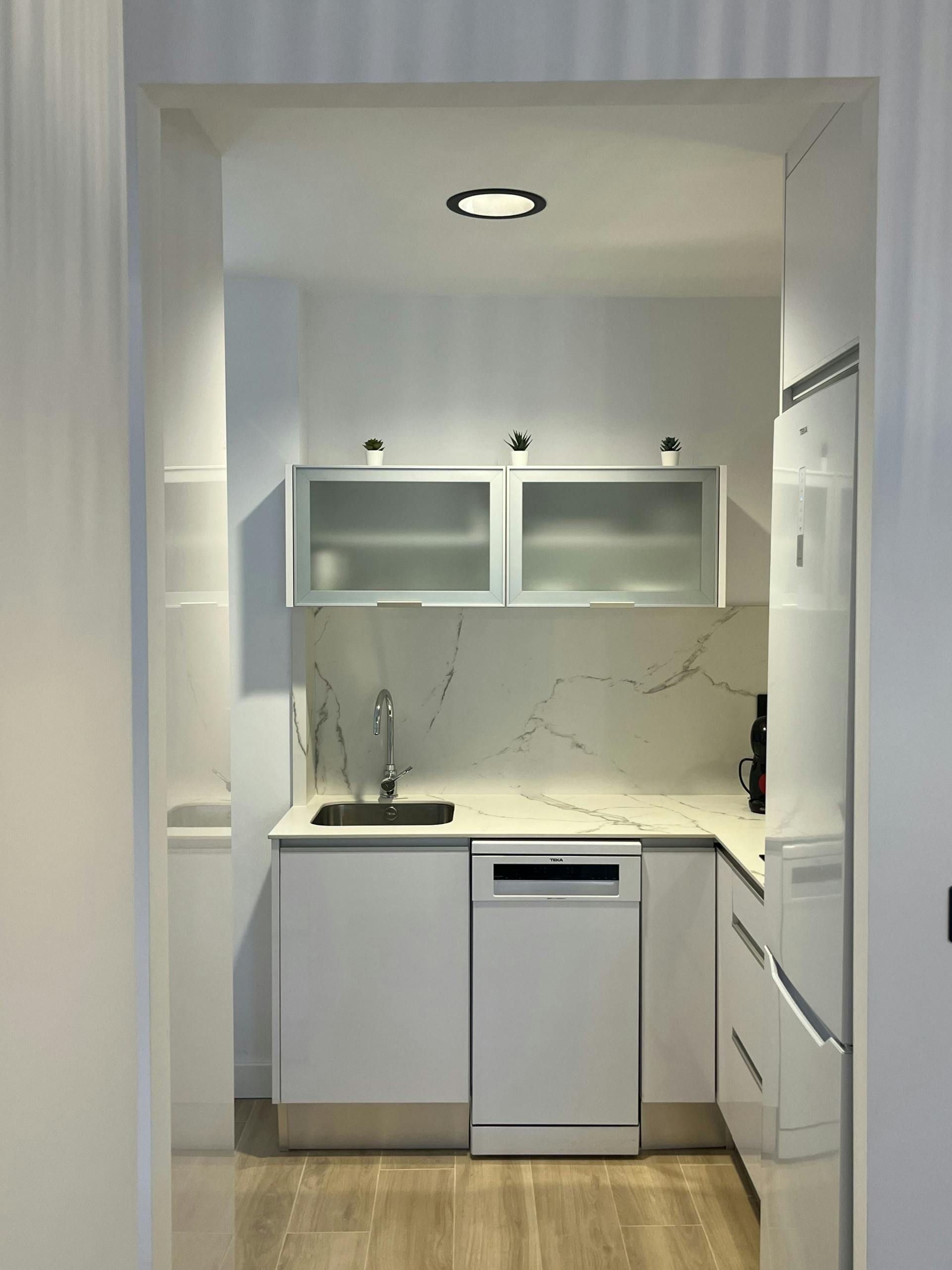 Outstanding features: - 1 spacious and bright bedroom for your comfort, with a large wardrobe and a bed of 1.9 metres long by 1.5 metres wide. - Space for up to 3 people, ideal for getaways with a couple or friends - Balcony with outdoor furniture - Lift for easy access - Equipped with heat pump heating and air-conditioning for your comfort in any season - High speed wifi internet for staying connected and telecommuting - Smart TV and radio for entertainment - Fully equipped separate kitchen with modern appliances: ceramic hob, microwave, oven, washing machine, dishwasher and more - Quality utensils and crockery, coffee maker, toaster, kettle and juicer for your culinary needs. - Smart Lock. - Washing room. - Soundproofed. - Very bright. - Eco-sustainable.