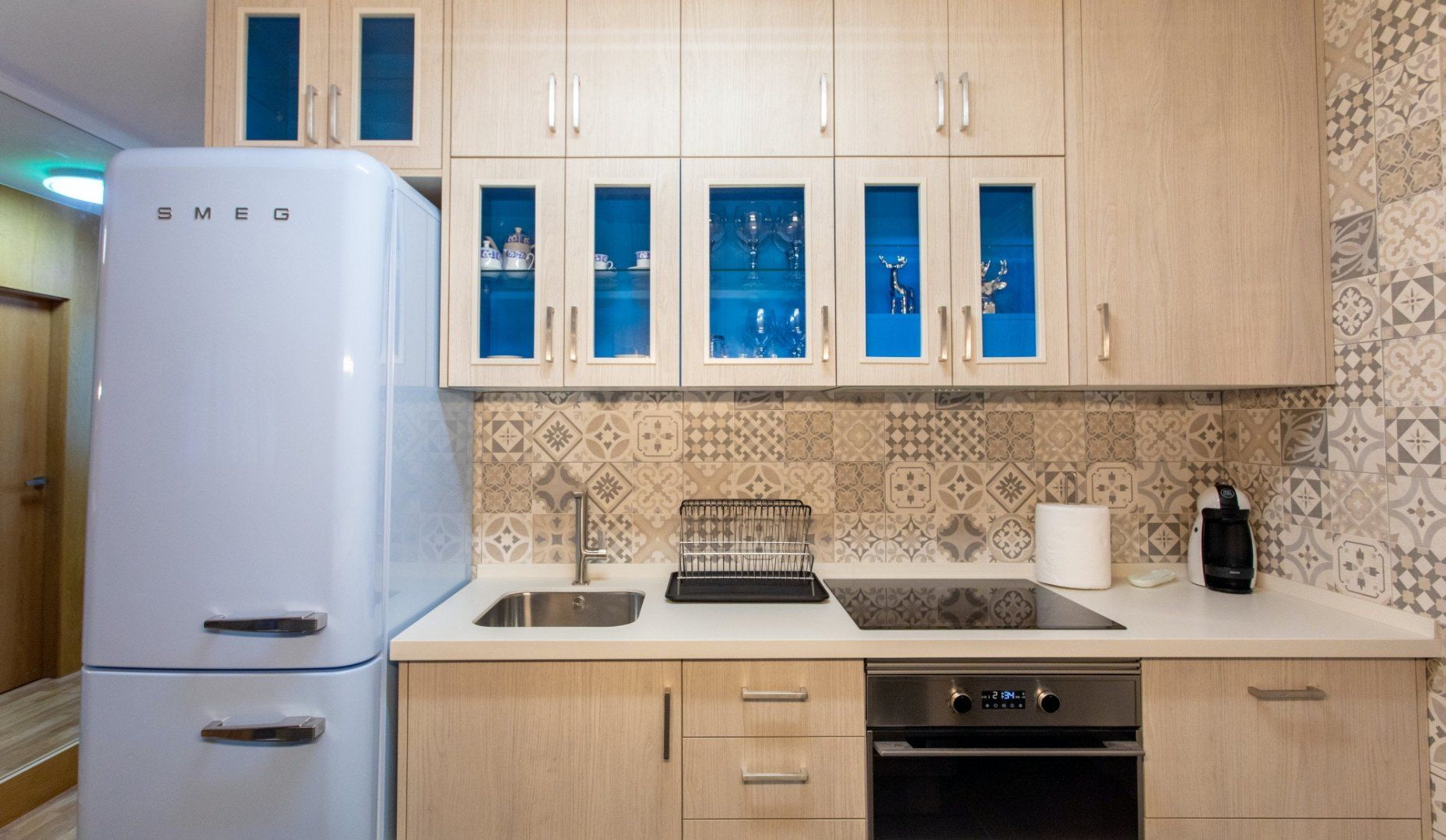 This is one of those apartments that just makes you alive. Vivid colours brighten the open-plan living space, which perfectly marries a cosy sofa area with beach bar vibes at the kitchen stools. It's a decor that makes you appreciate that you're really on holiday.