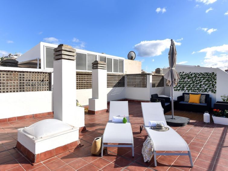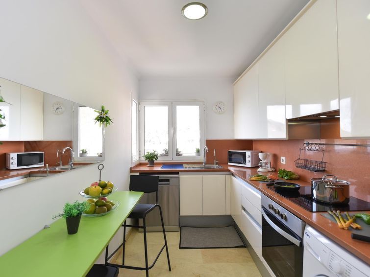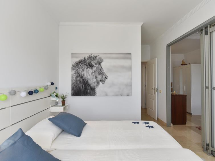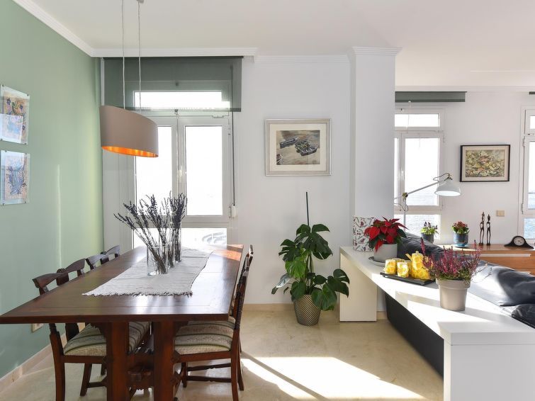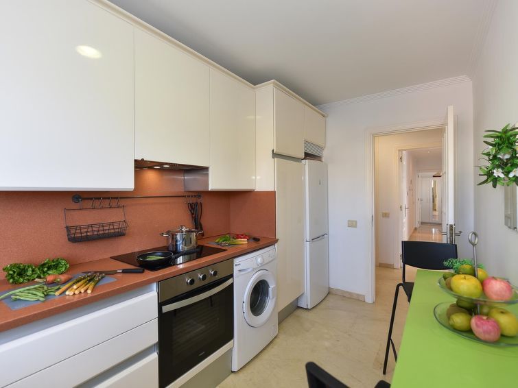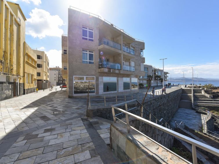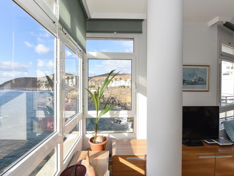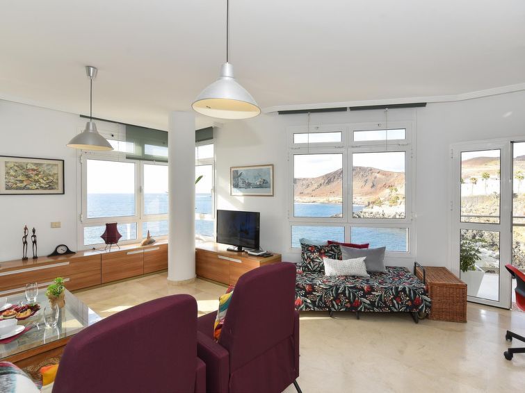 "El Confital RF18", 3-room apartment 110 m2. Comfortable and cosy furnishings: living/dining room with digital TV. Exit to the terrace. 1 room with 1 french bed and shower/WC. 1 room with 2 beds. Kitchen (oven, dishwasher, 3 ceramic glass hob hotplates, toaster, kettle, microwave, freezer, electric coffee machine).