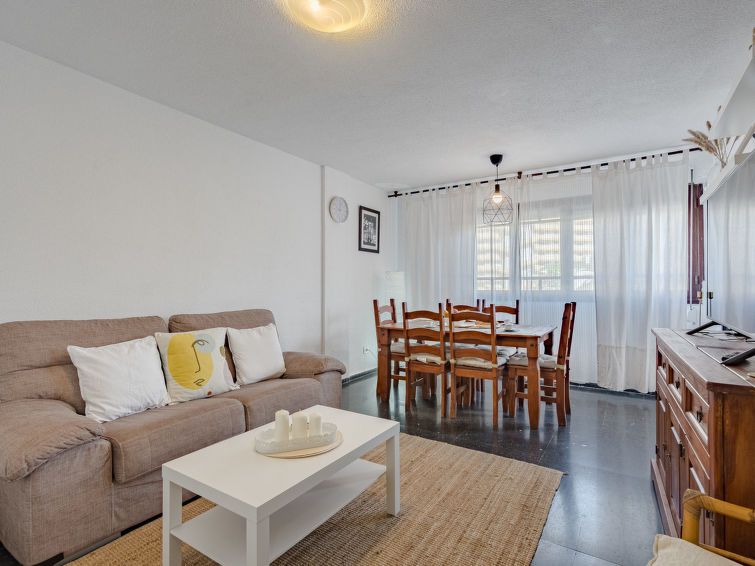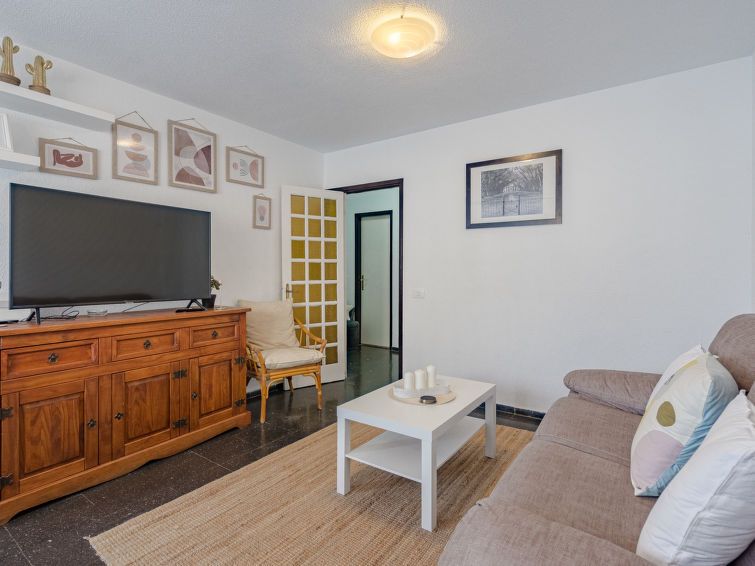 "Cristianos Central Cityscape", 5-room apartment 82 m2 on 1st floor. Object suitable for 5 adults. Comfortable and beautiful furnishings: living/dining room with dining table, digital TV, flat screen and fan. Exit to the balcony. 1 room with 1 french bed (135 cm, length 190 cm). 1 room with 2 beds (90 cm, length 190 cm).