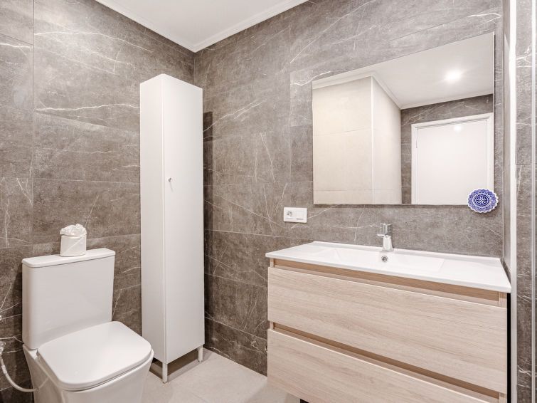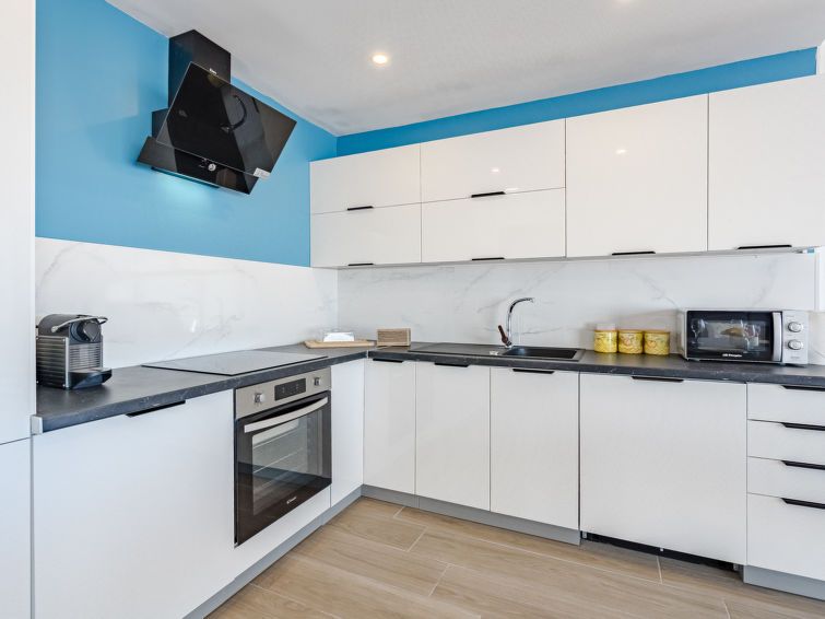 A beautiful, well-equipped terrace house with a sea view and within walking distance of shops, restaurants, the beach, and more. The front door is accessible via a high stone staircase. It's a shame that the toilet was in the bathroom and not separate, which makes it difficult to use. Furthermore, the two awnings were broken and couldn't be repaired during our stay. It was a huge loss. We couldn't keep the heat out; there was no shade on the terrace, so the curtains were closed during the day, and it was dark inside.