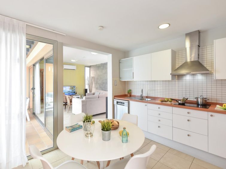 "3 in PAR 4", 3-room villa 90 m2. Object suitable for 2 adults + 2 children. Very comfortable and luxurious furnishings: living/dining room with TV, flat screen and air conditioning. Exit to the patio. 1 room with 1 double bed (135 cm, length 190 cm). 1 room with 2 beds (90 cm, length 190 cm).