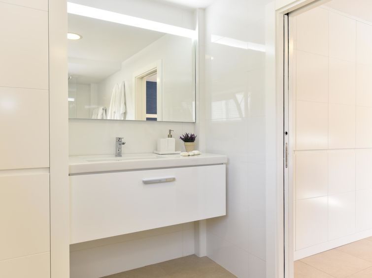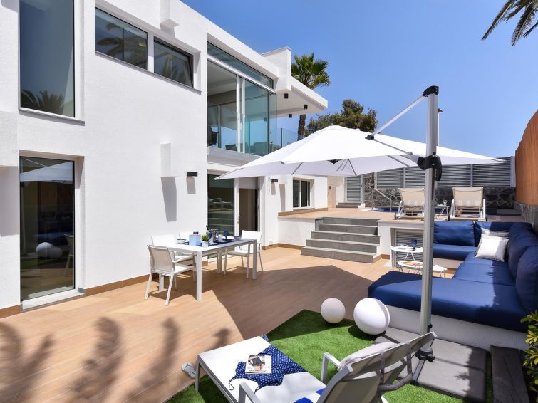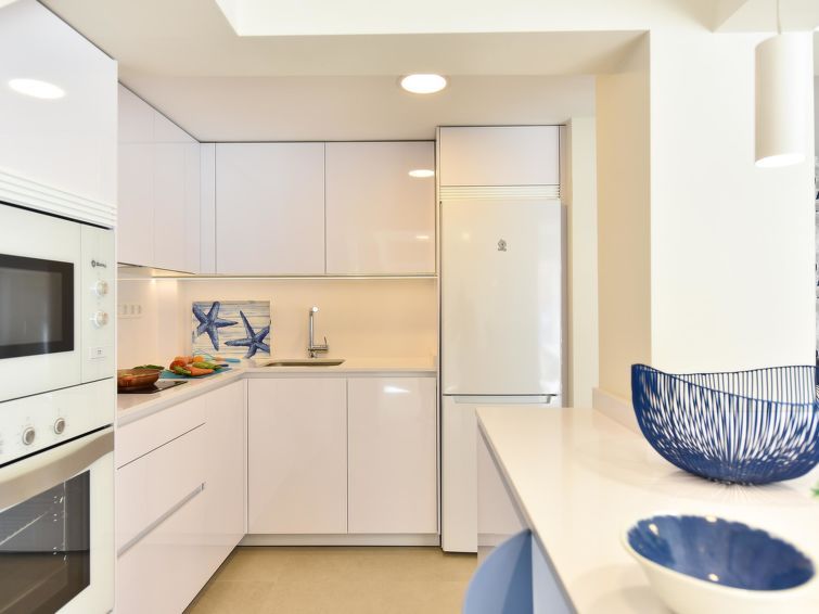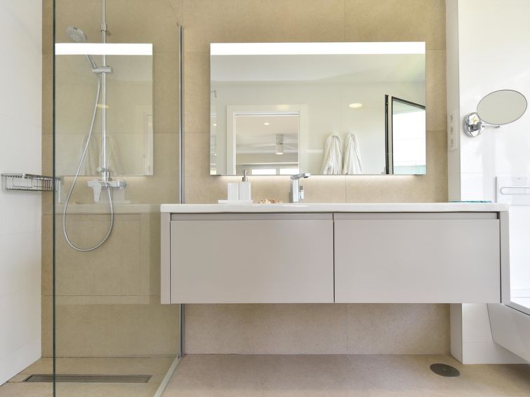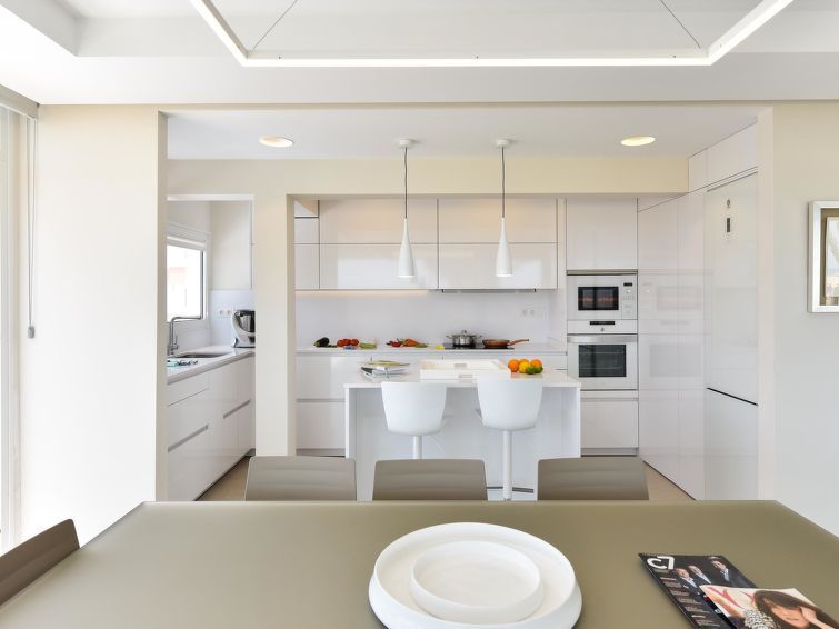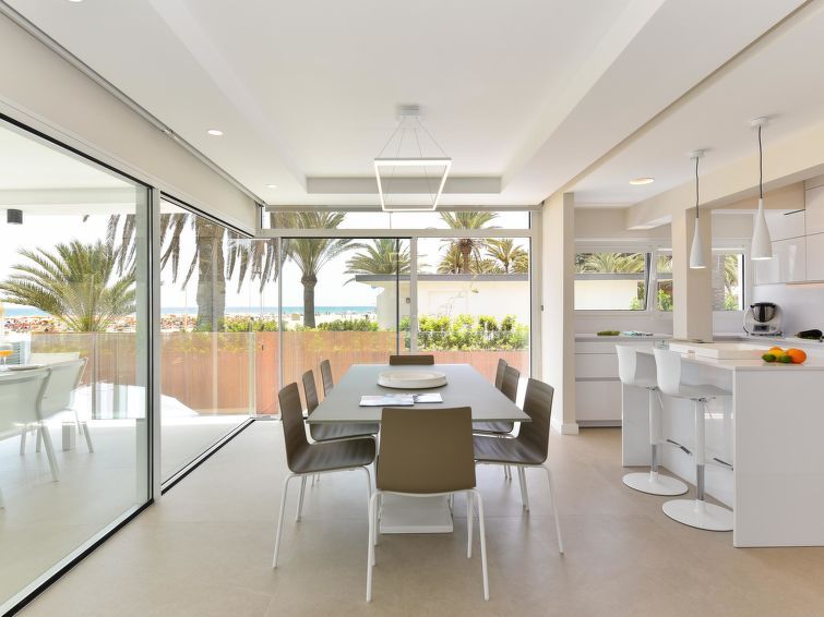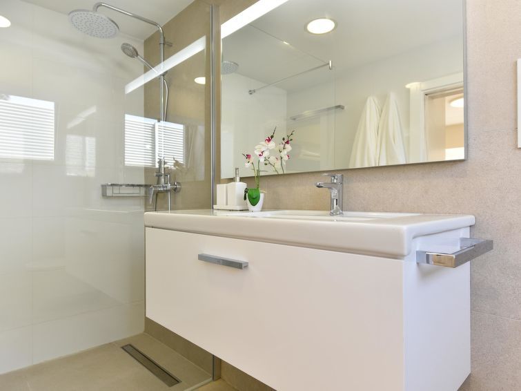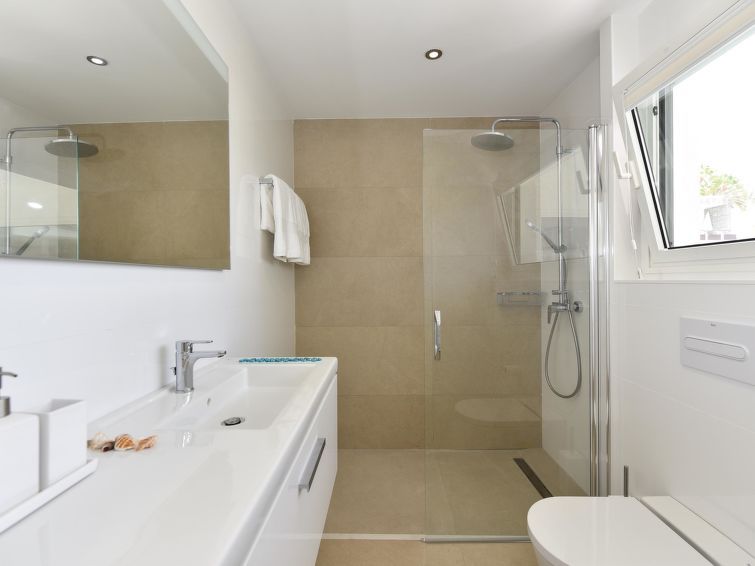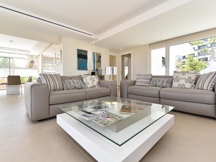 "Blue Ocean", 6-room house 560 m2 on 2 levels. Modern furnishings: living room with digital TV, flat screen and air conditioning. 2 double bedrooms, each room with 1 french bed and air conditioning with shower/WC. Kitchen-/living room (dishwasher, toaster, kettle, microwave, electric coffee machine) with dining table.