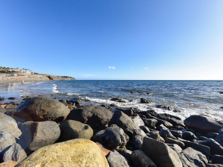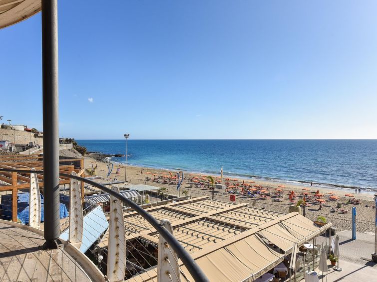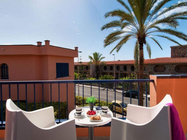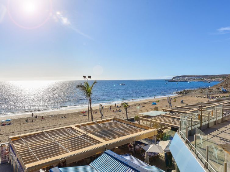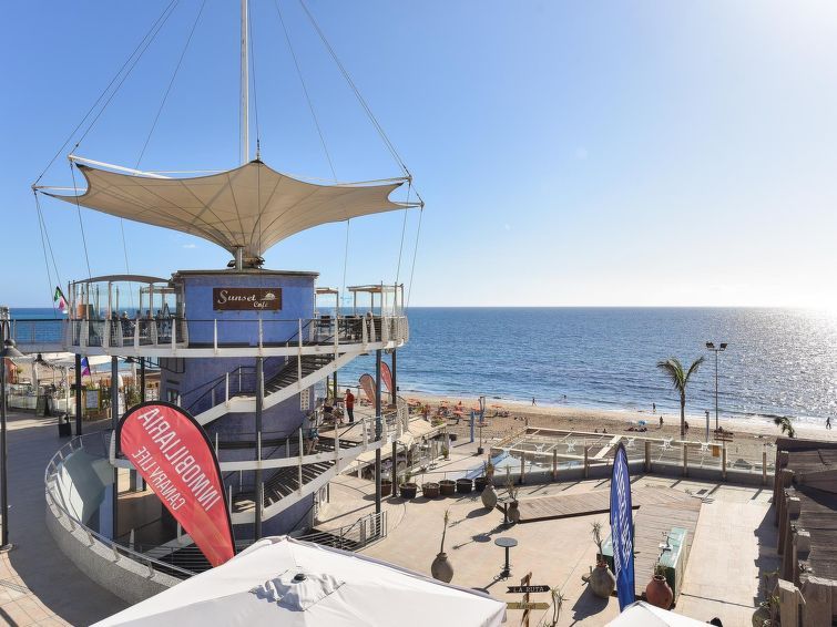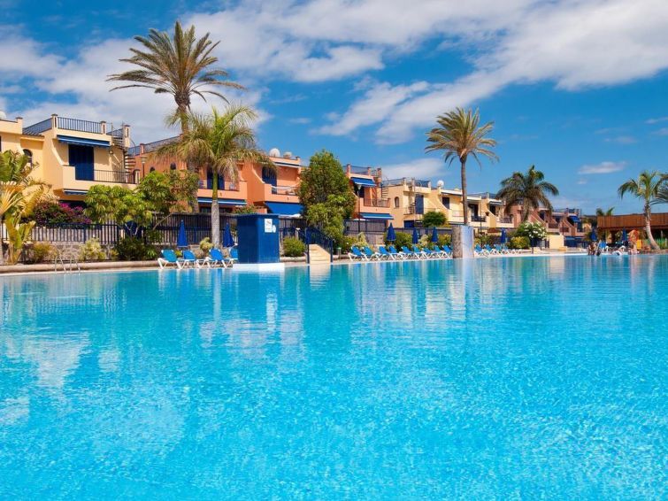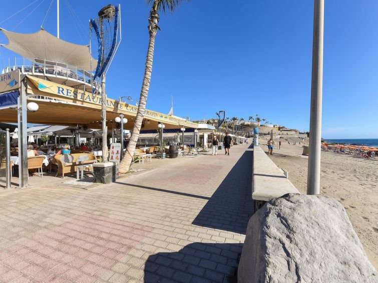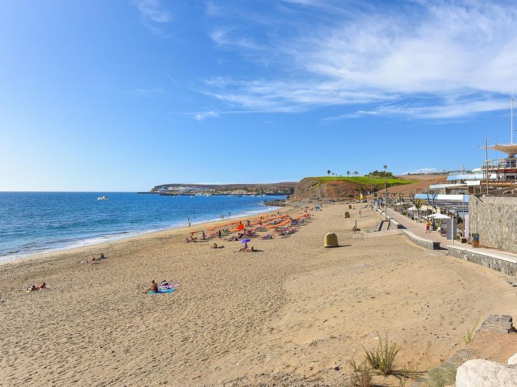 "Bungalow in Meloneras HH28", 3-room apartment 90 m2 on 2 levels. Simple and comfortable furnishings: living room with digital TV, DVD and air conditioning. Exit to the terrace. Open kitchen (oven, 2 ceramic glass hob hotplates, toaster, kettle, microwave, freezer, electric coffee machine).