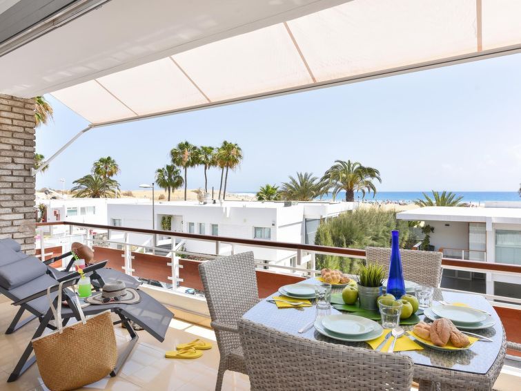"Charca CM18", 4-room apartment 110 m2. Comfortable and modern furnishings: living/dining room with dining nook, satellite TV, digital TV and air conditioning. Exit to the balcony. 1 room with 1 french bed and air conditioning. 2 rooms, each room with 2 beds and air conditioning. Kitchen-/living room (oven, dishwasher, 4 ceramic glass hob hotplates, toaster, kettle, microwave, electric coffee machine) with dining table.