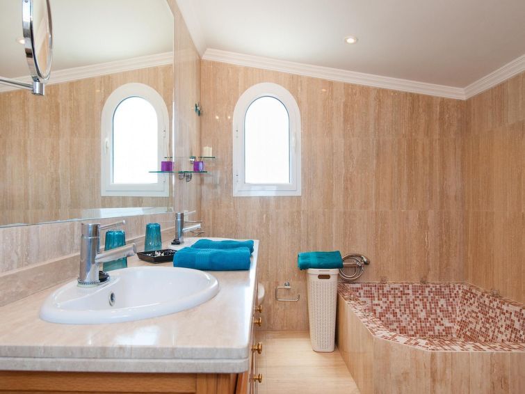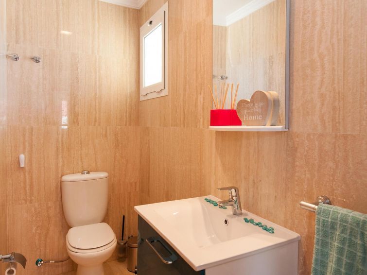 "Curie", 5-room house 240 m2. Comfortable and cosy furnishings: living/dining room with dining table, satellite TV and digital TV. Exit to the terrace. Kitchen (oven, 4 ceramic glass hob hotplates, toaster, kettle, microwave, freezer, electric coffee machine). Sep. WC. Upper floor: 1 room with 1 french bed and bath/WC.