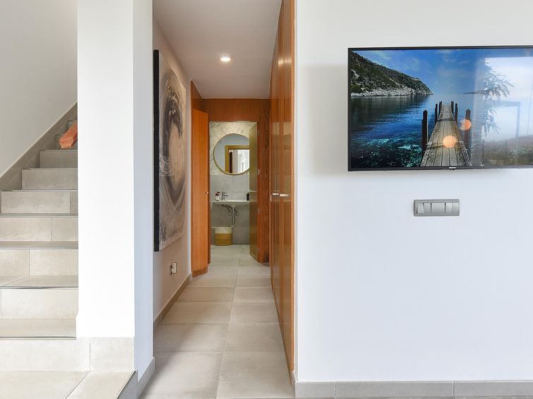 "Dragos", 3-room house 105 m2 on 2 levels. Modern and cosy furnishings: living/dining room with dining table, satellite TV, digital TV and air conditioning. Exit to the patio. 1 room with 2 beds and air conditioning. Open kitchen (oven, dishwasher, 3 ceramic glass hob hotplates, toaster, kettle, microwave, freezer, electric coffee machine).