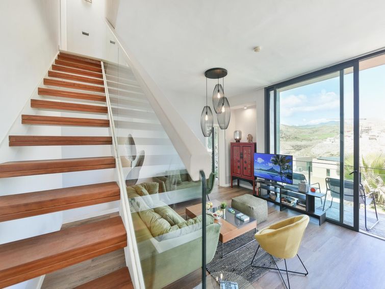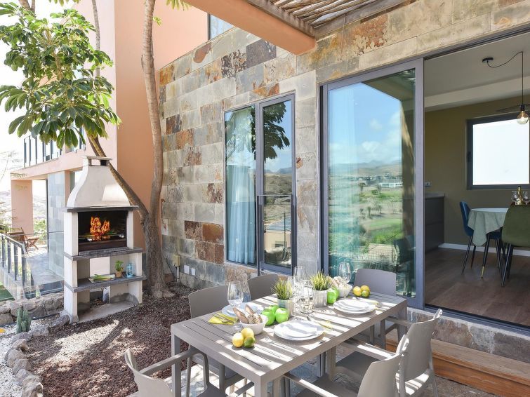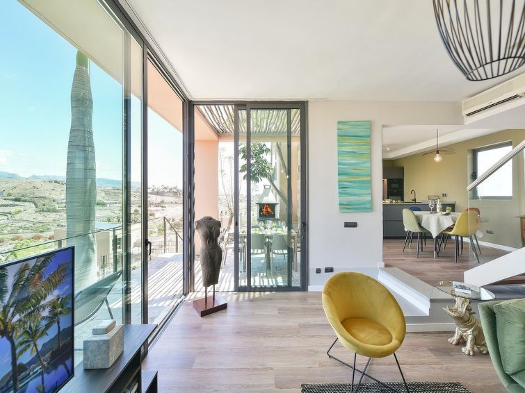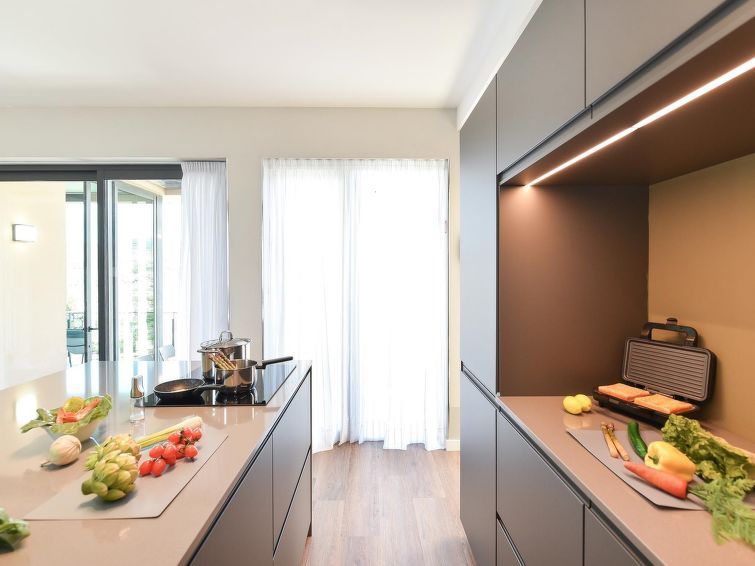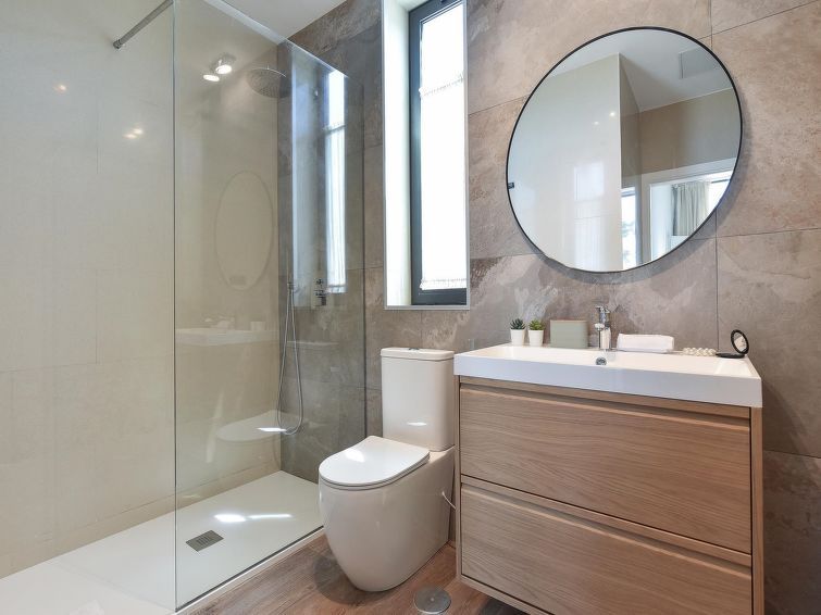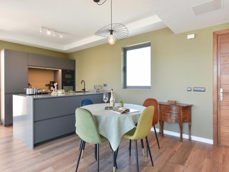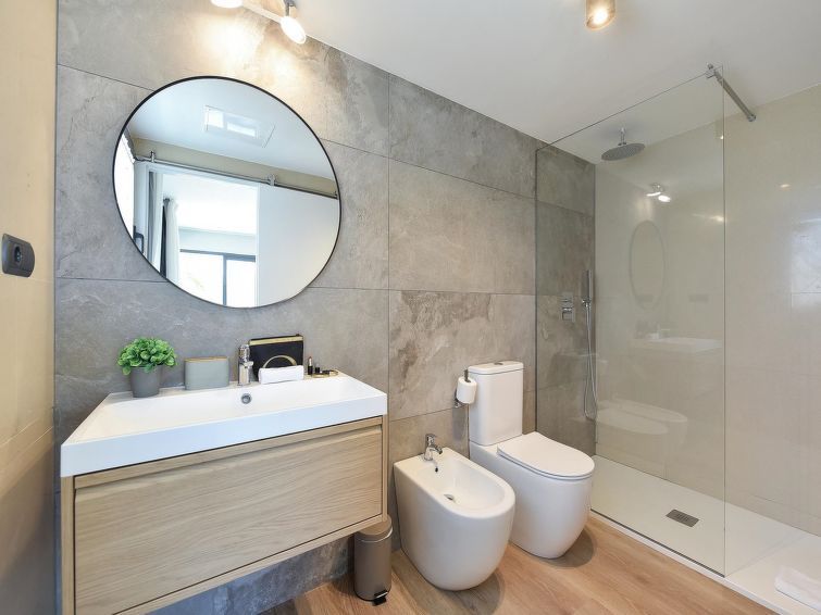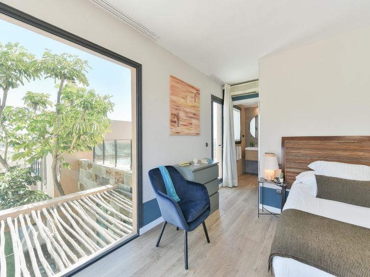 4-room house 115 m2. Modern furnishings: living/dining room with dining table, satellite TV, cable TV, digital TV, DVD and air conditioning. Exit to the patio. 1 room with 2 beds and shower/WC. Open kitchen (oven, dishwasher, 4 ceramic glass hob hotplates, toaster, kettle, microwave, freezer, electric coffee machine).