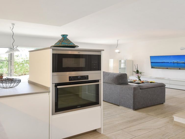 "Marina port 15", 3-room apartment 81 m2. Object suitable for 4 adults. Bright, very simple and cosy furnishings: living/dining room with TV, flat screen and air conditioning. Exit to the patio. Open kitchen (oven, dishwasher, 4 ceramic glass hob hotplates, toaster, kettle, microwave, electric coffee machine) with dining table.