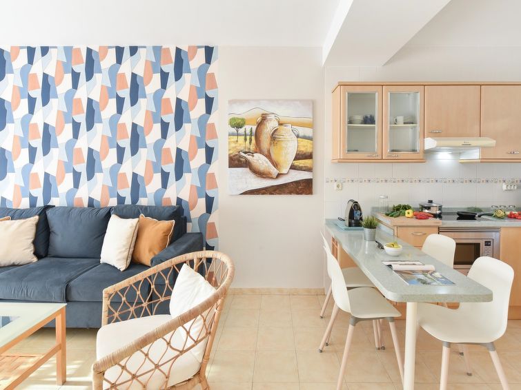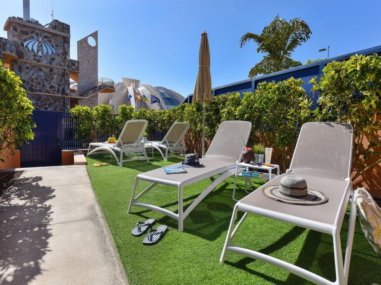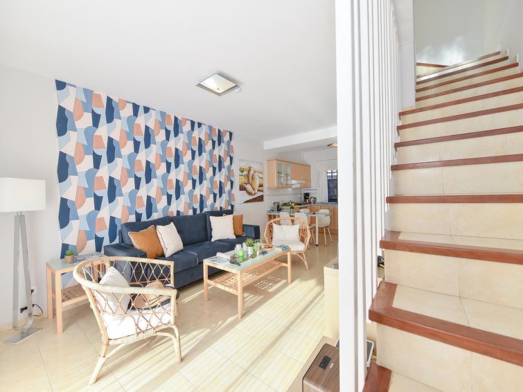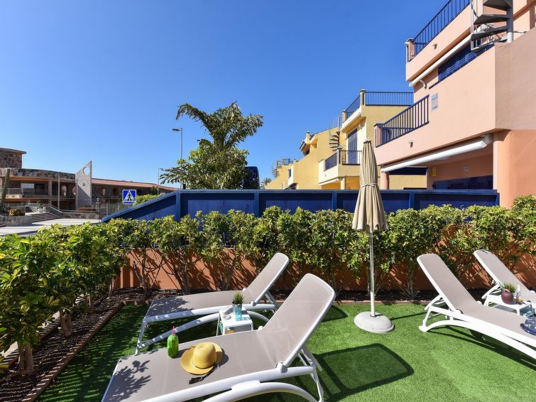 "Meloneras 47", 4-room apartment 90 m2 on 2 levels. Cosy furnishings: living/dining room with dining nook, TV, satellite TV, digital TV and air conditioning. 1 room with 1 double bed. 1 double bedroom with 2 beds. Open kitchen (oven, 3 ceramic glass hob hotplates, microwave, freezer) with dining table and air conditioning.