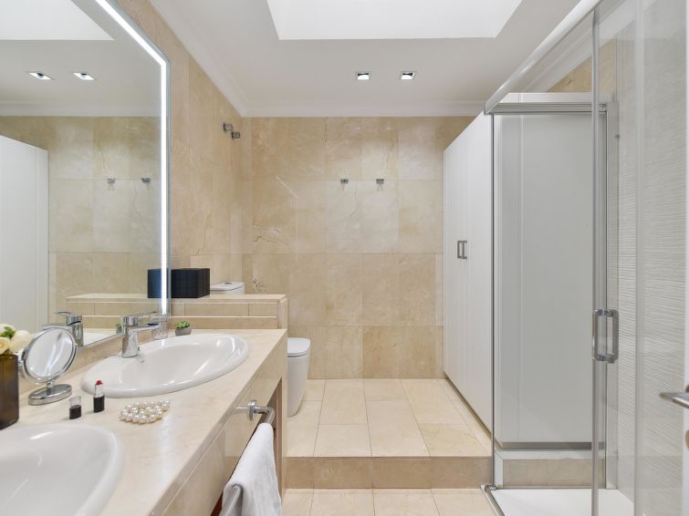 5-room house 280 m2 on 3 levels. Spacious and bright, beautiful and luxurious furnishings: living/dining room with dining nook, satellite TV, digital TV and air conditioning with 1 double bed, satellite TV, digital TV and air conditioning with 1 double bed, shower/WC, TV, digital TV and air conditioning with 2 beds, shower/WC, satellite TV and digital TV with 2 beds, shower/WC, satellite TV, digital TV and air conditioning.