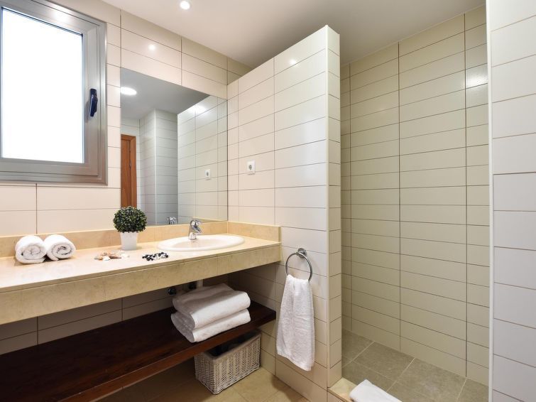 "P9", 4-room house 115 m2. Comfortable and modern furnishings: living room with satellite TV, digital TV, video, hi-fi system, DVD and air conditioning. Exit to the patio. 1 room with 1 french bed, shower/WC and air conditioning. Exit to the garden. 2 rooms, each room with 2 beds and air conditioning.