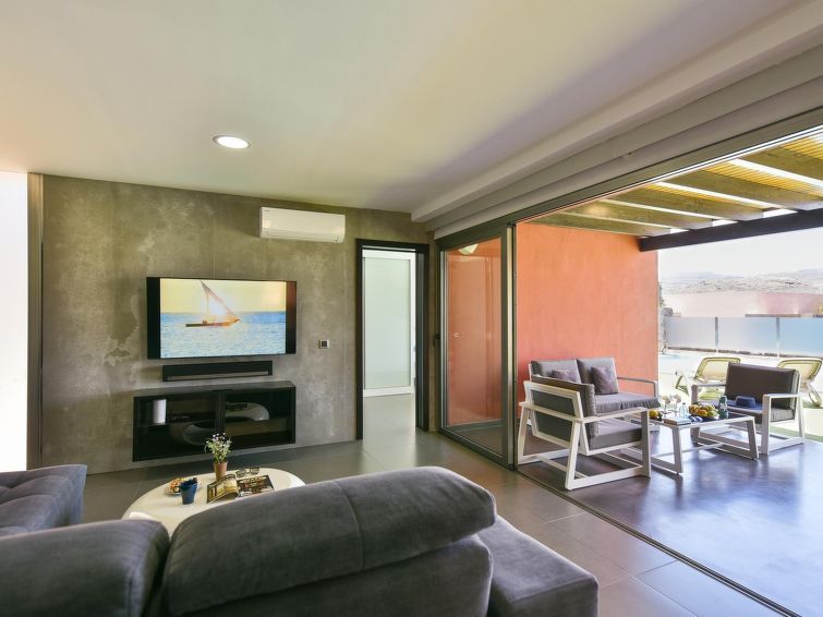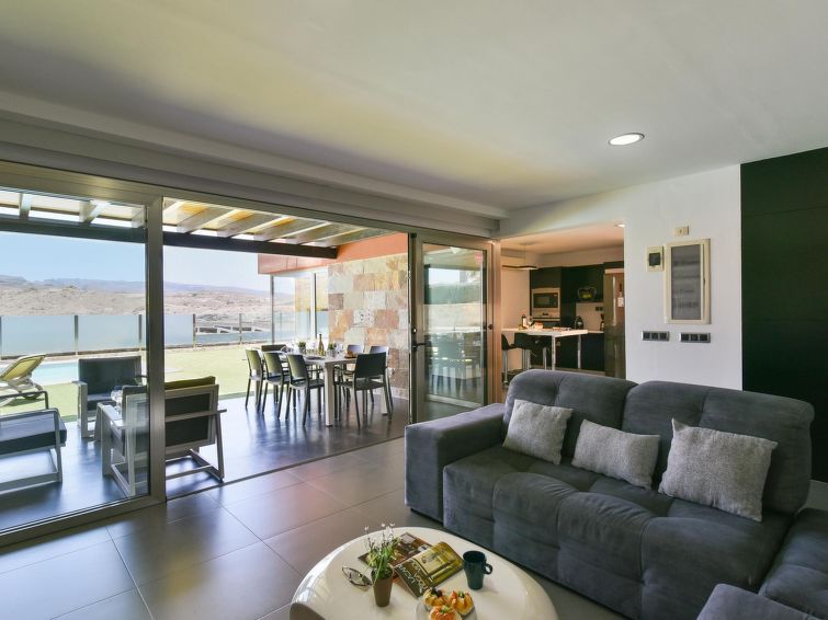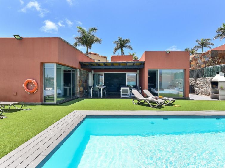 "Salobre Golf Resort", 4-room house 75 m2. Comfortable and cosy furnishings: living/dining room with satellite TV, digital TV and DVD. 1 room with 1 double bed, shower/WC, satellite TV, digital TV and air conditioning. 1 double bedroom with 2 beds, shower/WC and air conditioning. Open kitchen (oven, dishwasher, 4 ceramic glass hob hotplates, microwave, electric coffee machine).
