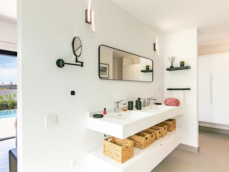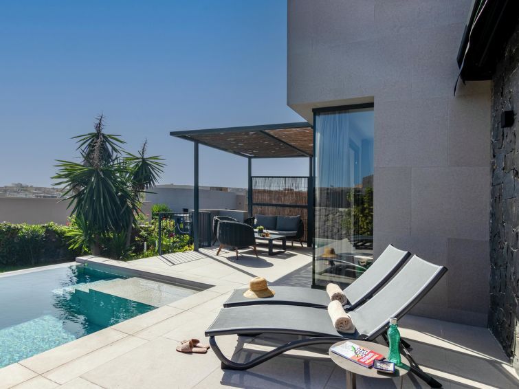 "Yucas 16", 3-room villa 90 m2. Spacious and bright, comfortable and modern furnishings: living/dining room with digital TV and flat screen. Exit to the terrace. 1 room with 1 french bed. 1 room with 1 french bed. Exit to the terrace. Open kitchen (oven, dishwasher, 4 ceramic glass hob hotplates, toaster, kettle, microwave, freezer, electric coffee machine).