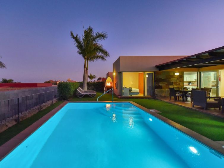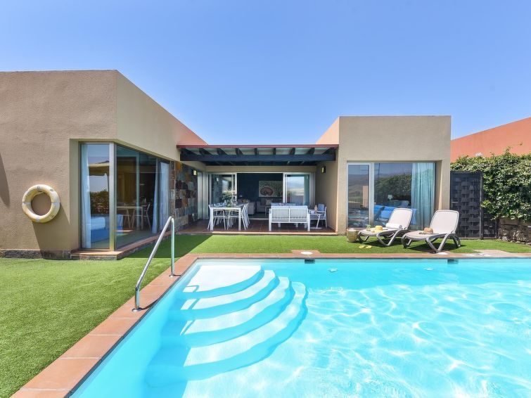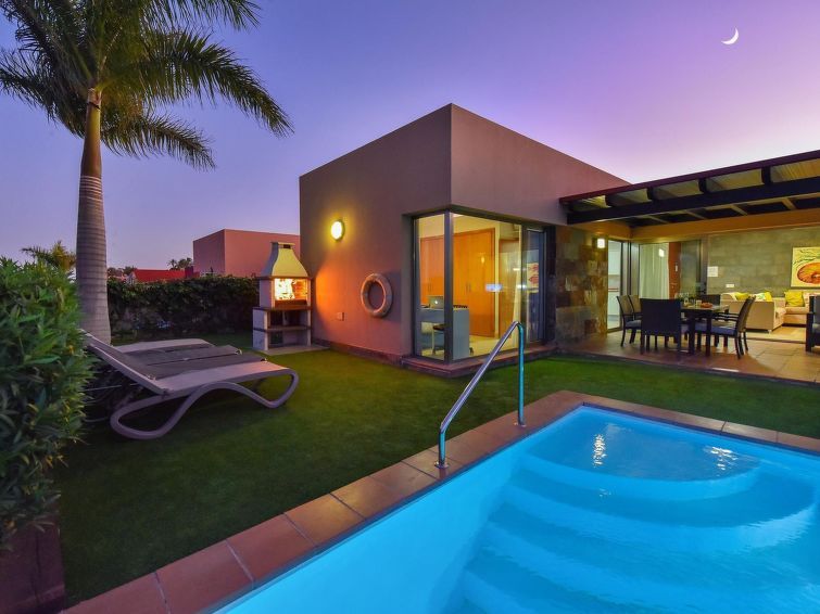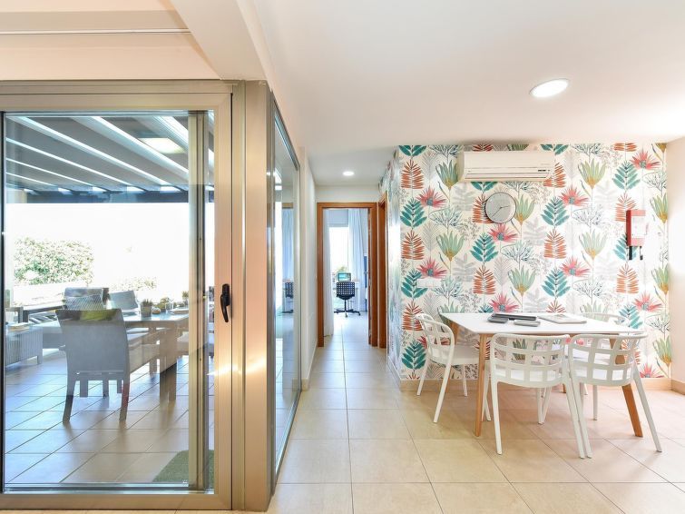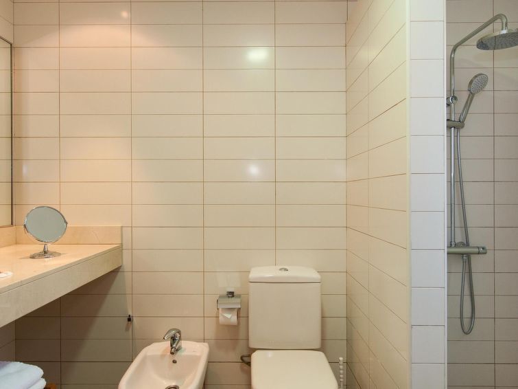 "Tipo 2 dormitorios", 3-room house 115 m2. Comfortable and modern furnishings: living room with satellite TV, digital TV, hi-fi system, DVD and air conditioning. Exit to the patio, to the swimming pool. 1 room with shower/bidet/WC and air conditioning. Exit to the garden, to the swimming pool.