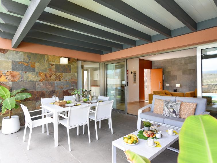 "Tipo 2 dormitorios", 3-room house 115 m2. Comfortable and modern furnishings: living room with satellite TV, digital TV and air conditioning. Exit to the patio, to the swimming pool. 1 room with 1 french bed and air conditioning. Exit to the patio. 1 room with 2 beds (90 cm, length 190 cm), satellite TV and digital TV.