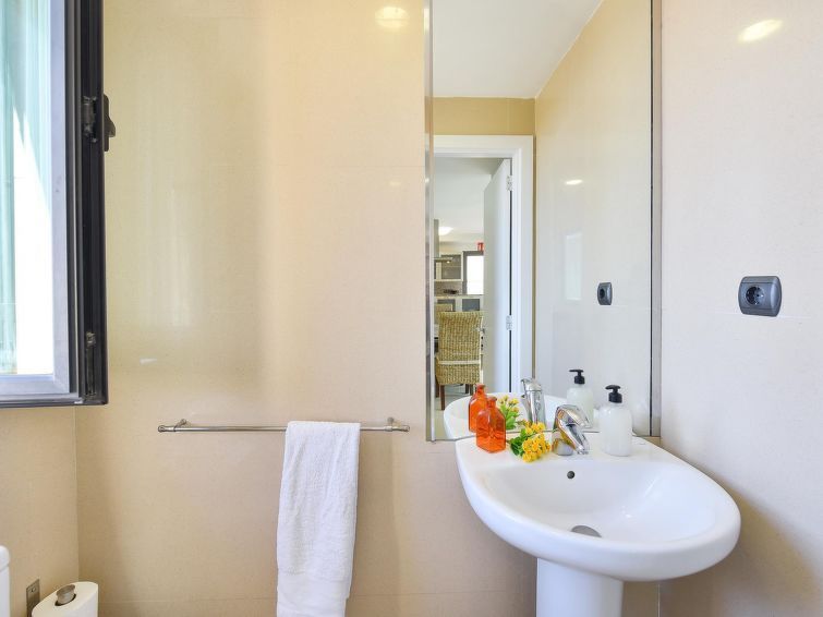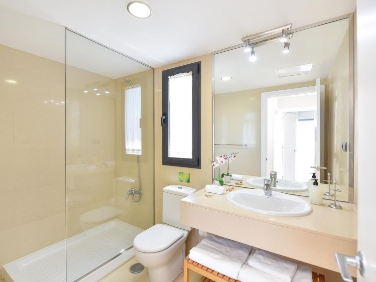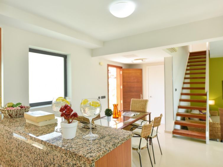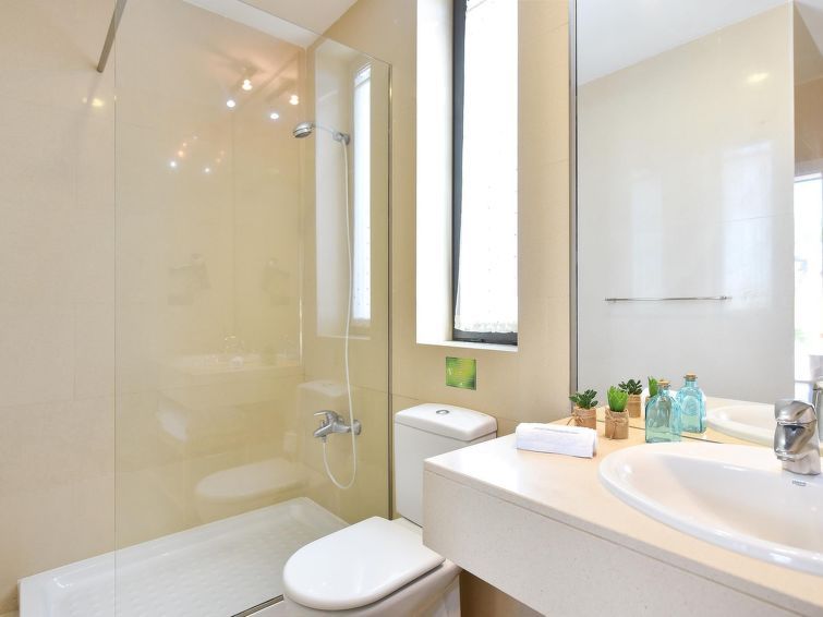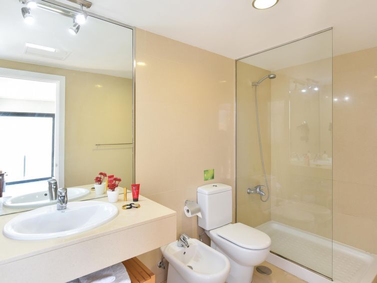 "Tipo 3 Dormitorios", 4-room house 135 m2 on 2 levels. Comfortable and modern furnishings: living room with dining table, satellite TV, hi-fi system and DVD. Living room with 1 french bed, dining nook, shower/WC, satellite TV, DVD and air conditioning with 2 beds, shower/WC and air conditioning with 2 beds, shower/WC and air conditioning.