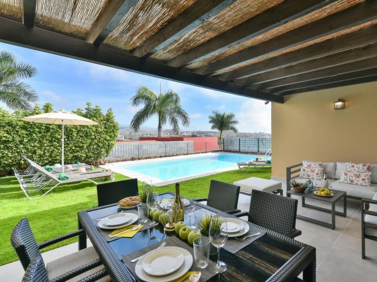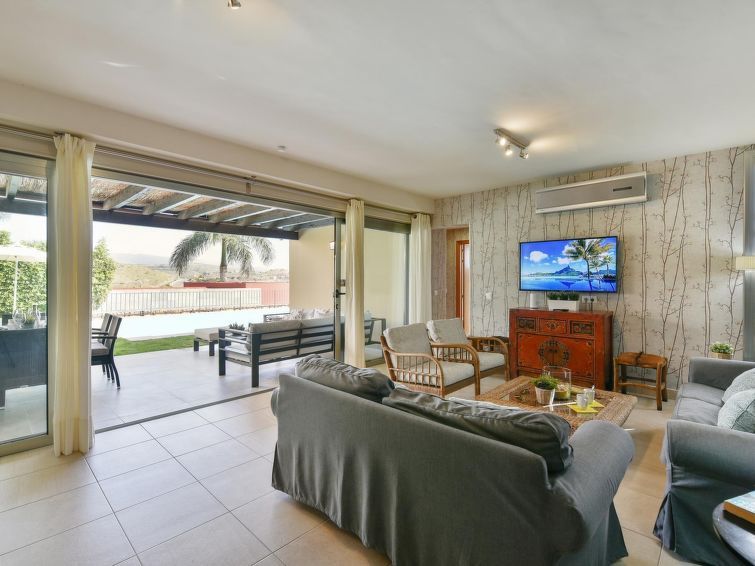 "Tipo 3 dormitorios", 4-room house 115 m2. Comfortable and beautiful furnishings: living/dining room with satellite TV, digital TV, DVD and air conditioning. 1 room with 1 french bed, shower/WC and air conditioning. 2 double bedrooms, each room with 2 beds, shower/WC and air conditioning.
