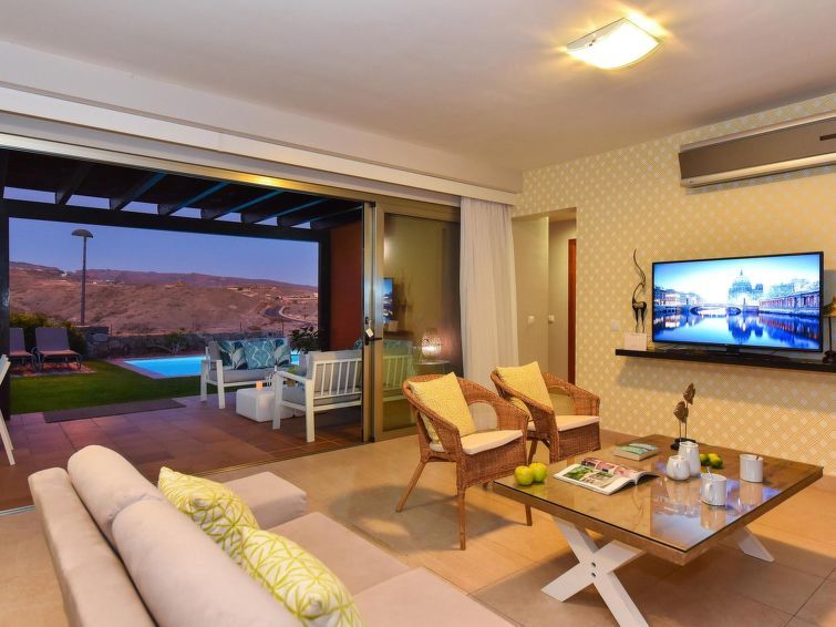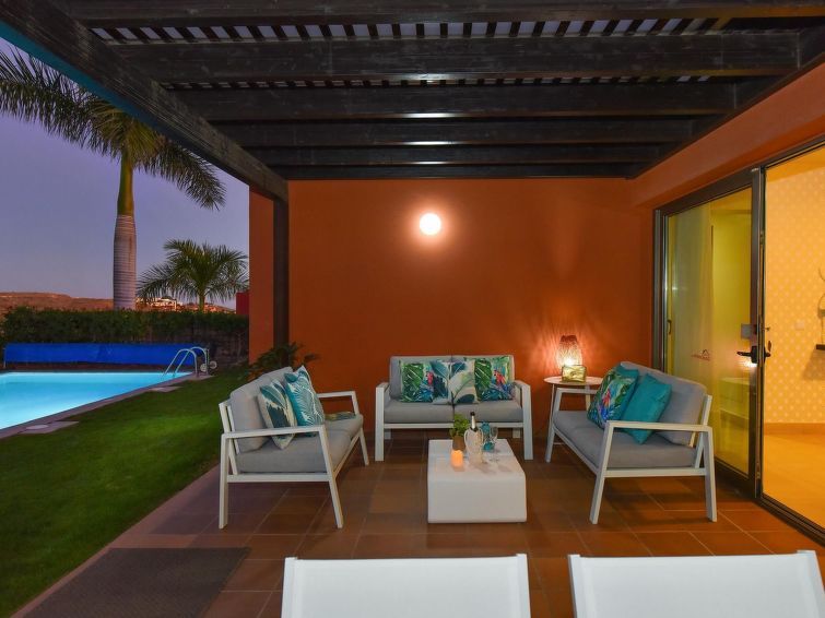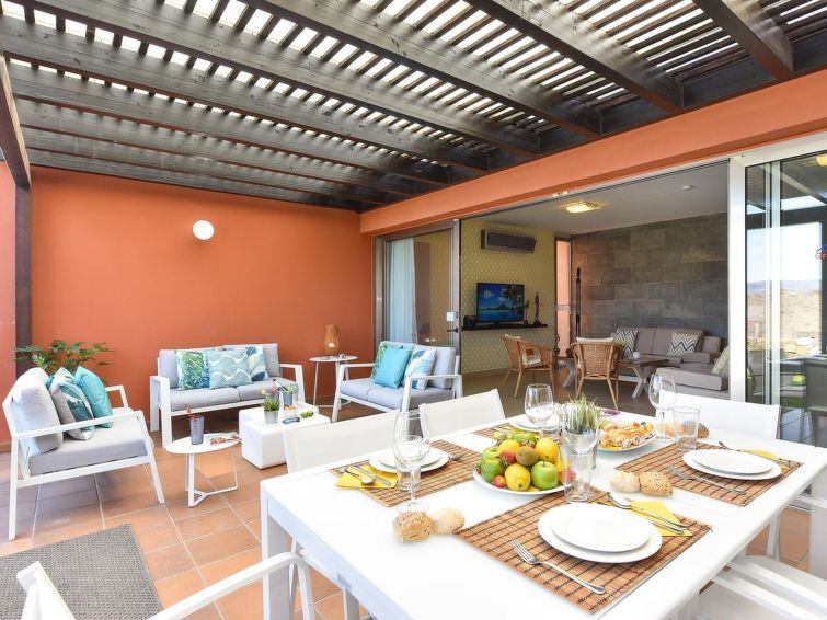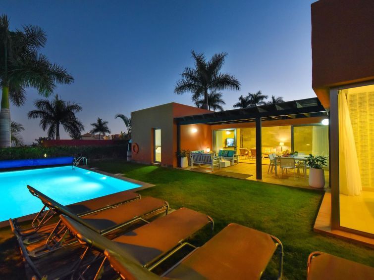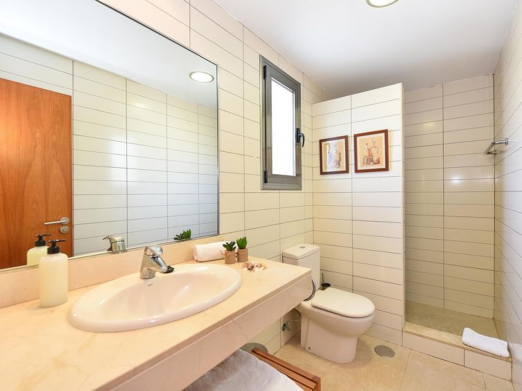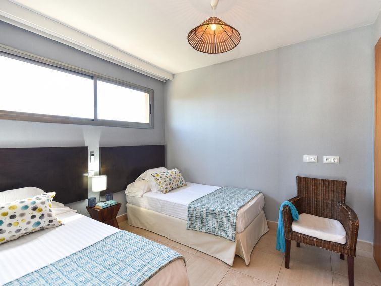 "Tipo 3 dormitorios", 4-room house 115 m2. Comfortable and modern furnishings: living room with satellite TV, digital TV, video, hi-fi system, DVD and air conditioning. Exit to the patio. 1 room with 1 french bed, shower/WC and air conditioning. Exit to the garden. 1 room with 2 beds.