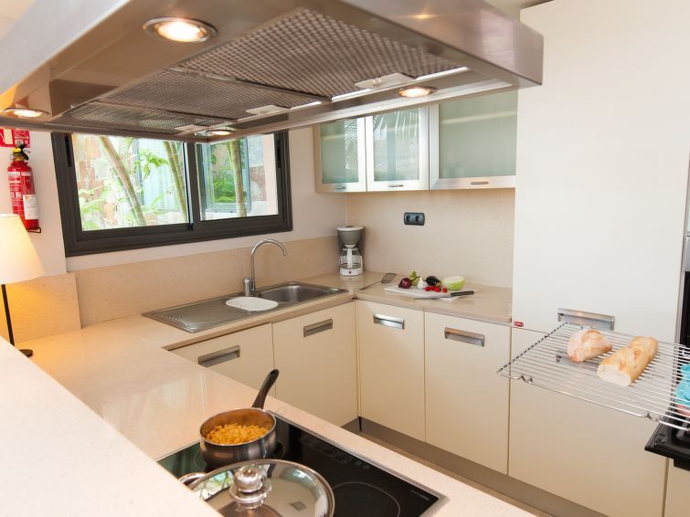 3-room house 80 m2 on 2 levels. Comfortable and modern furnishings: living/dining room with dining table, satellite TV, digital TV, DVD and air conditioning. Exit to the patio. 1 room with 2 beds and shower/WC. Kitchen (oven, dishwasher, 4 ceramic glass hob hotplates, toaster, kettle, microwave, freezer, electric coffee machine).