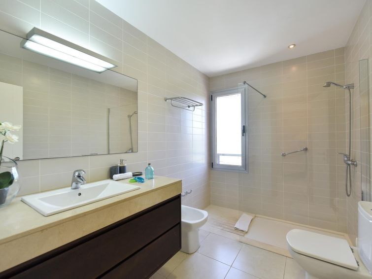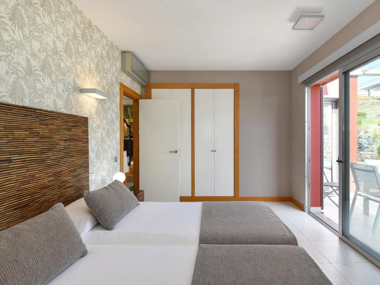 "Vista Golf 22", 3-room house 105 m2 on 2 levels. Comfortable and modern furnishings: living/dining room with satellite TV, digital TV and air conditioning. Exit to the patio. 1 room with 1 french bed, shower/bidet/WC and air conditioning. Exit to the garden, to the swimming pool.