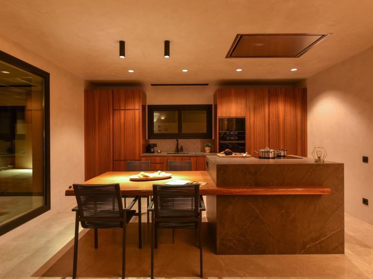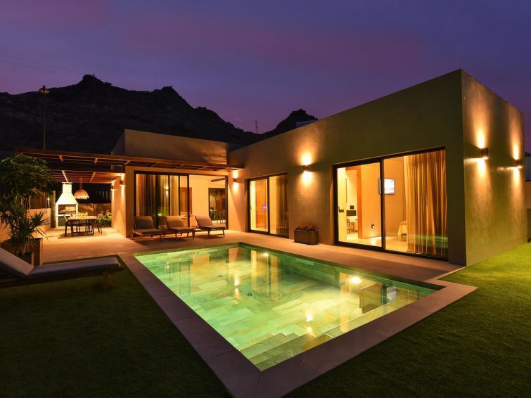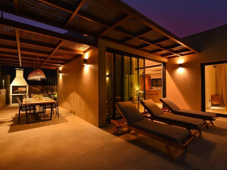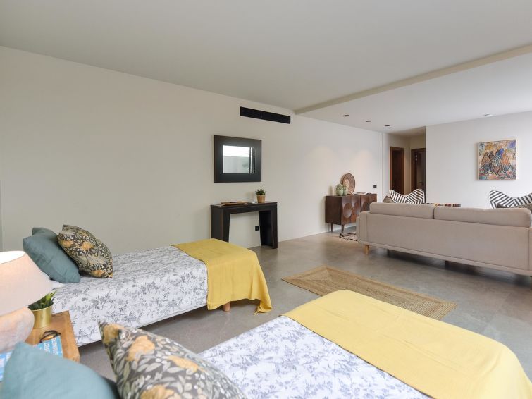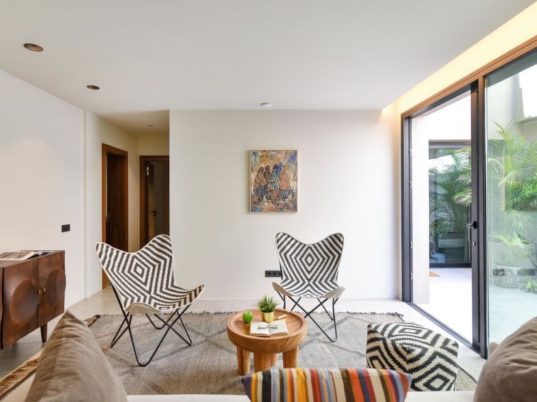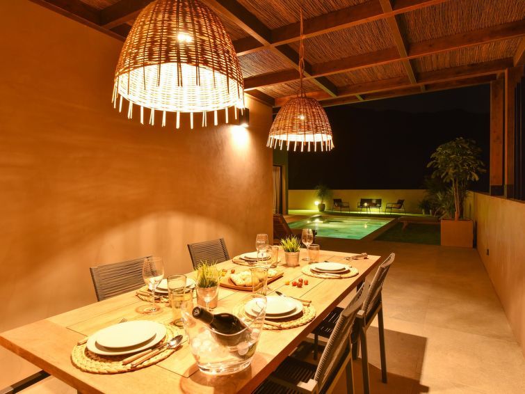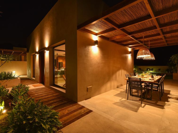 "Almadies Tauro", 5-room house 180 m2. Comfortable and modern furnishings: living/dining room with digital TV and air conditioning. Exit to the patio, to the swimming pool. 1 room with 1 french bed, shower/WC and air conditioning. Exit to the garden, to the swimming pool. 1 room with 2 beds and air conditioning.