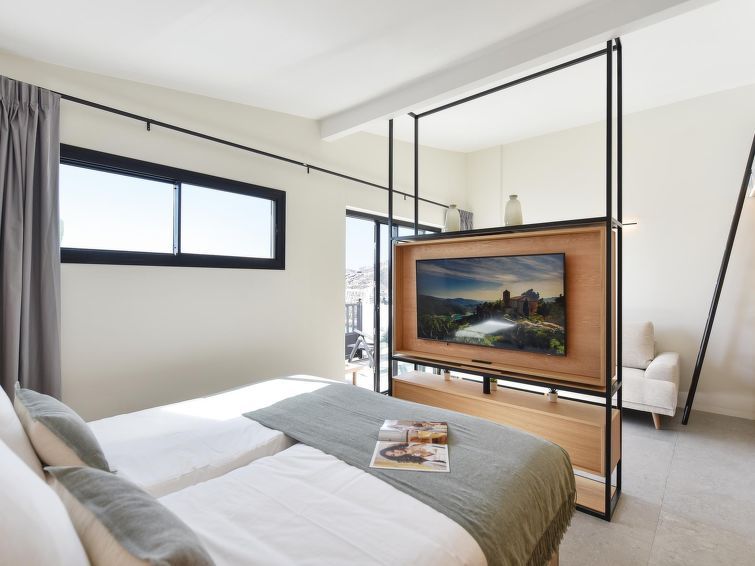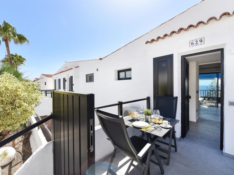 "Los Canarios 629 - Adults Only", 1-room studio 34 m2. Practical and modern furnishings: 1 room with 2 beds (80 cm, length 190 cm), digital TV and air conditioning. Exit to the balcony. Kitchen (3 ceramic glass hob hotplates, toaster, kettle, microwave, freezer, electric coffee machine).