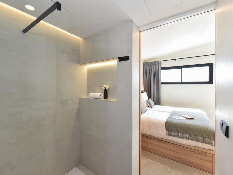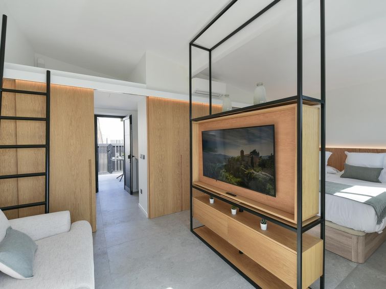 "Los Canarios 630 - Adults Only", 1-room studio 34 m2. Practical and modern furnishings: 1 room with 2 beds (80 cm, length 190 cm), digital TV and air conditioning. Exit to the balcony. Kitchen (3 ceramic glass hob hotplates, toaster, kettle, microwave, freezer, electric coffee machine).