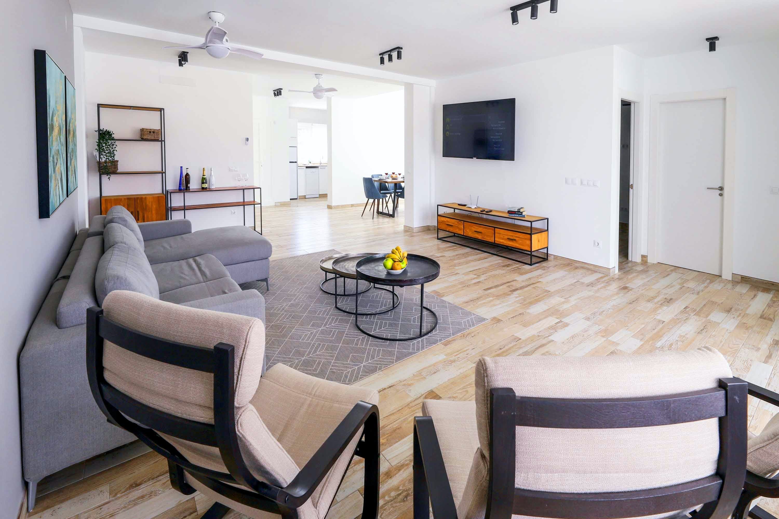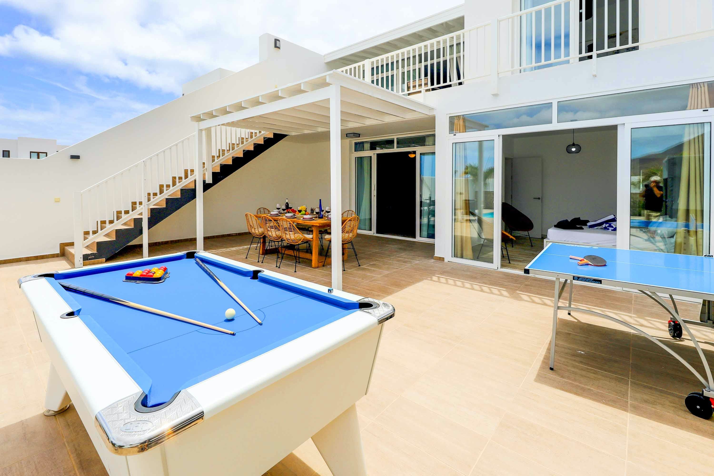 "Say Hola to The property! This pretty villa is great for groups who want the best of both worlds. The villa boasts an impressive terrace, ideal for lounging by the pool on a sunny day. There's plenty for you to do as The property comes with both a pool table and table tennis for your entertainment. If you prefer the company of a good book, then the exterior day bed is just for you, shaded from the sun, this cosy spot on the terrace is great for a midday snooze. There's also a shaded terrace and a bohemian-style dining table for alfresco dining. Why not grab some fresh produce from the local supermarket and whip up some delicious delights of homemade tapas or fresh seafood?