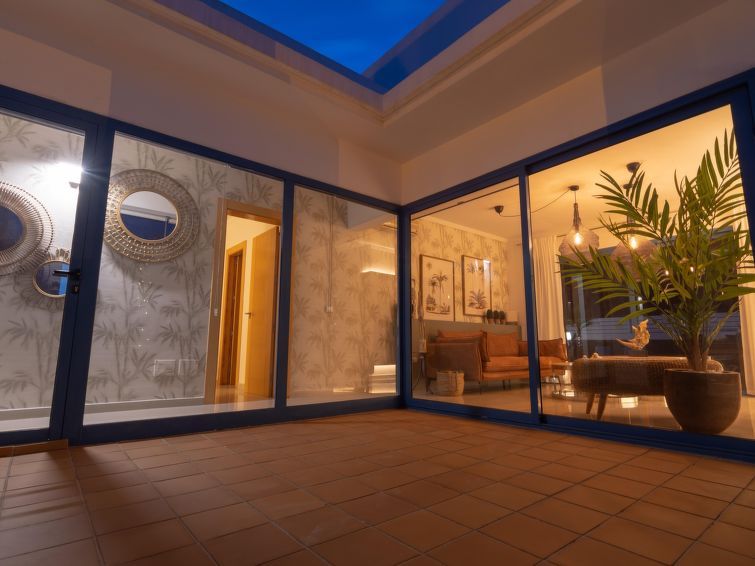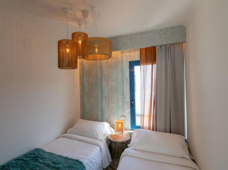 "Calista", 3-room terraced house 65 m2. Practical and comfortable furnishings: living/dining room with satellite TV, digital TV, flat screen and air conditioning. Exit to the terrace, to the swimming pool. 1 room with 1 french bed (150 cm, length 190 cm), bath/WC and air conditioning.