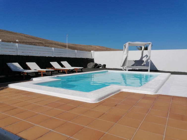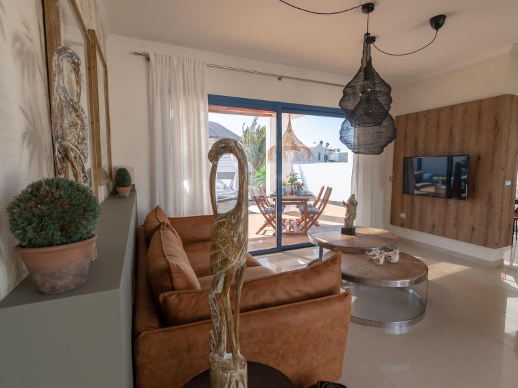"Famara", 3-room terraced house 65 m2. Practical and comfortable furnishings: living/dining room with satellite TV, digital TV, flat screen and air conditioning. Exit to the terrace, to the swimming pool. 1 room with 1 french bed (150 cm, length 190 cm), bath/WC and air conditioning.