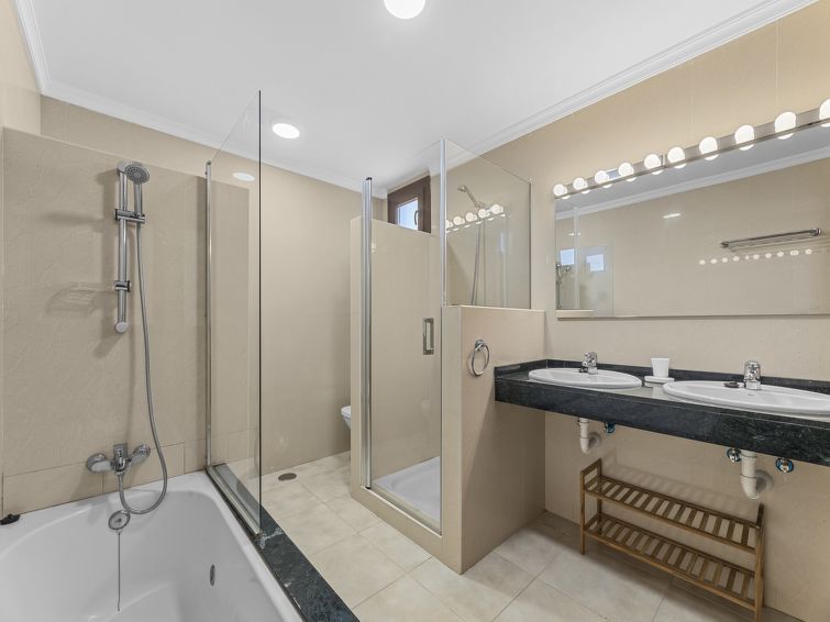 "Villa Rosa", 5-room villa 120 m2. Very comfortable and cosy furnishings: open living/dining room with digital TV, flat screen and air conditioning. Exit to the patio, to the swimming pool. 1 room with 2 beds. 3 rooms, each room with 1 french bed. Open kitchen (oven, dishwasher, 4 ceramic glass hob hotplates, toaster, kettle, microwave, freezer).