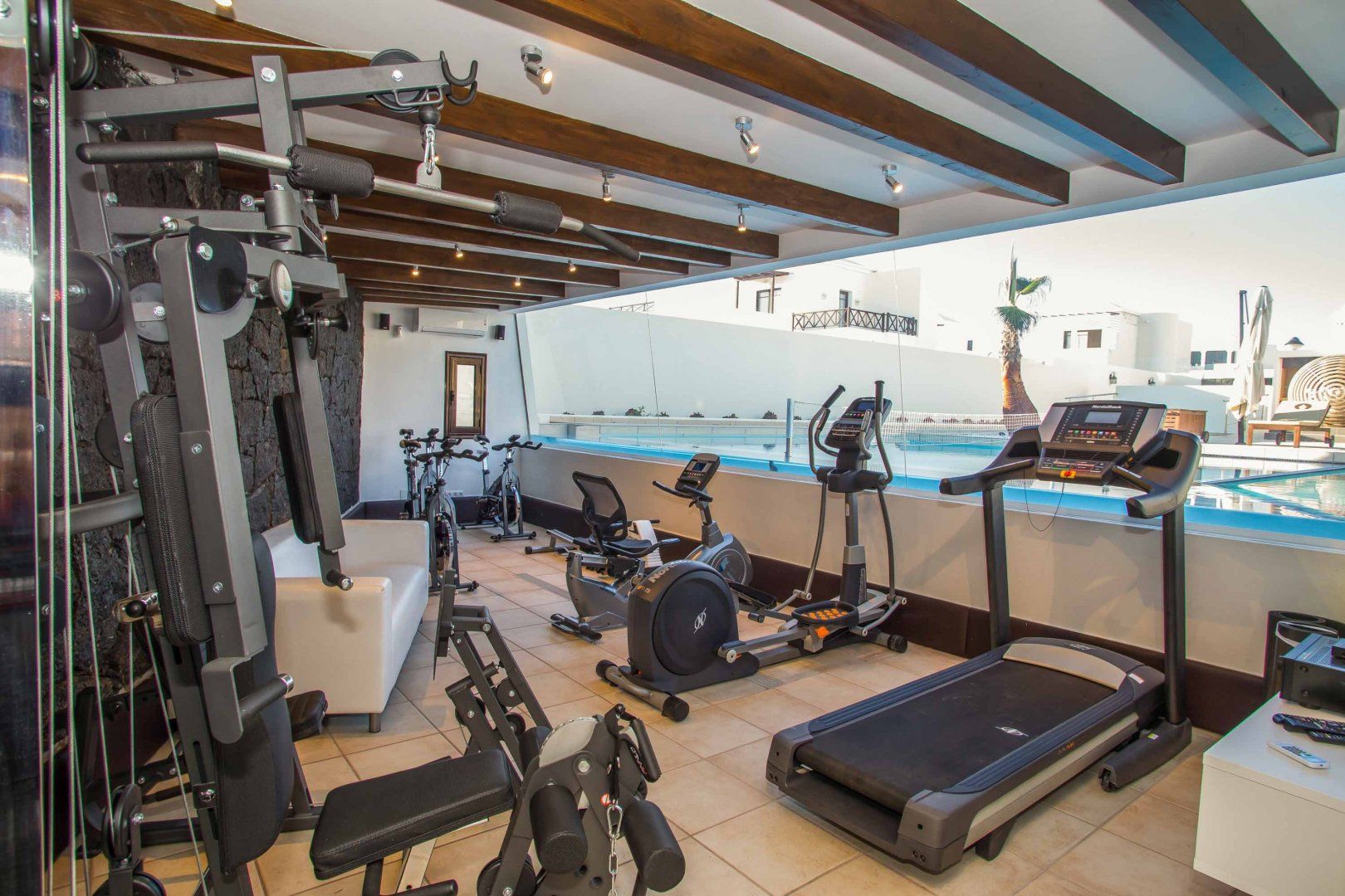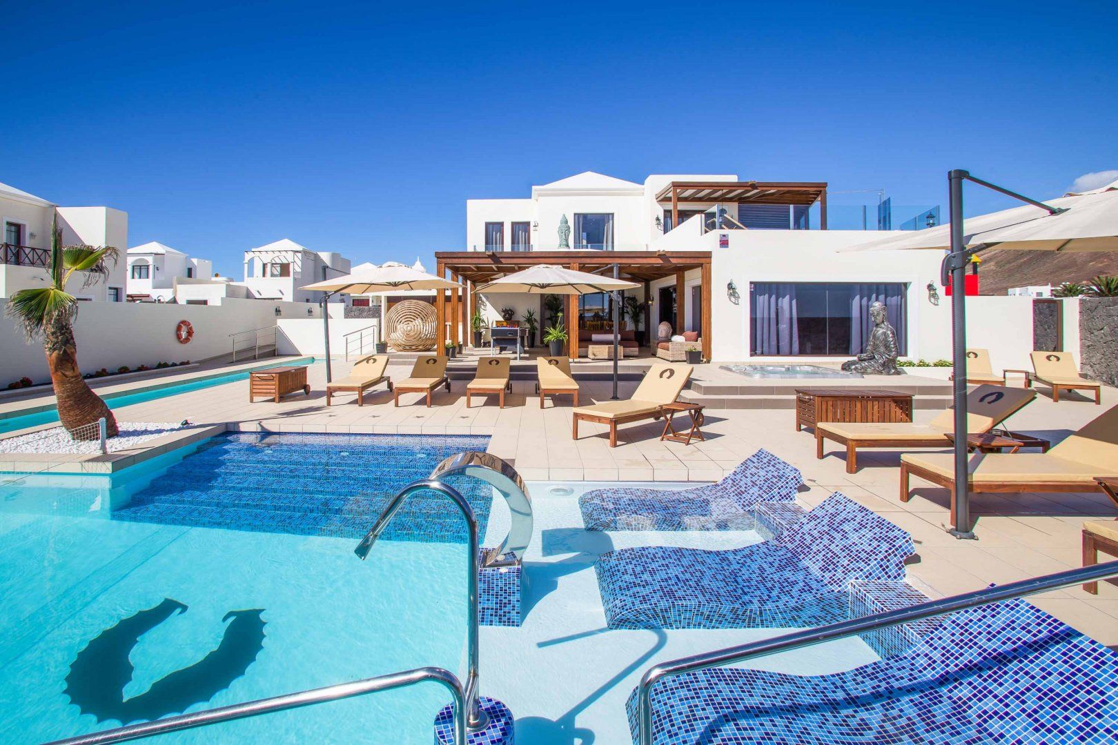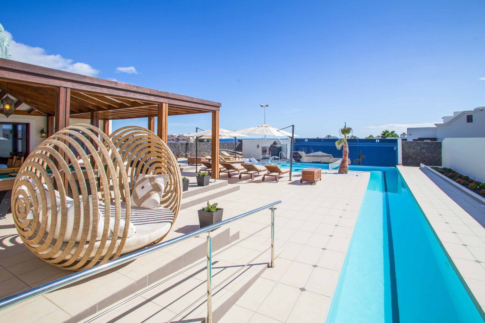 Nestled on Lanzarote's southern tip, this villa is perfect for a laid-back escape in Playa Blanca. Suitable for families, this home has two children’s rooms and an outside play area – sure to keep kids busy while you fit in a workout in the gym. A real highlight is the outside terrace, complete with plenty of seating for socialising and a large pool and separate hot tub for ultimate relaxation. When you’re ready to head out and about, three wonderful beaches with one backed by a restaurant-filled promenade can be reached within a fifteen-minute walk. While Timanfaya National Park is 20 kilometres away for a day out amongst Lanzarote’s spectacular volcanic landscape.