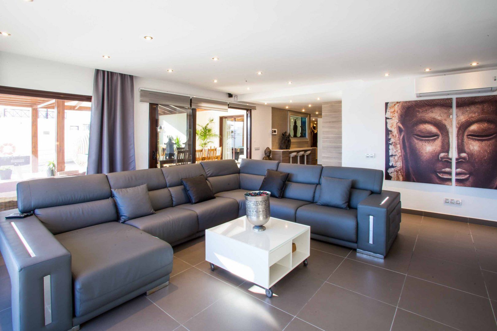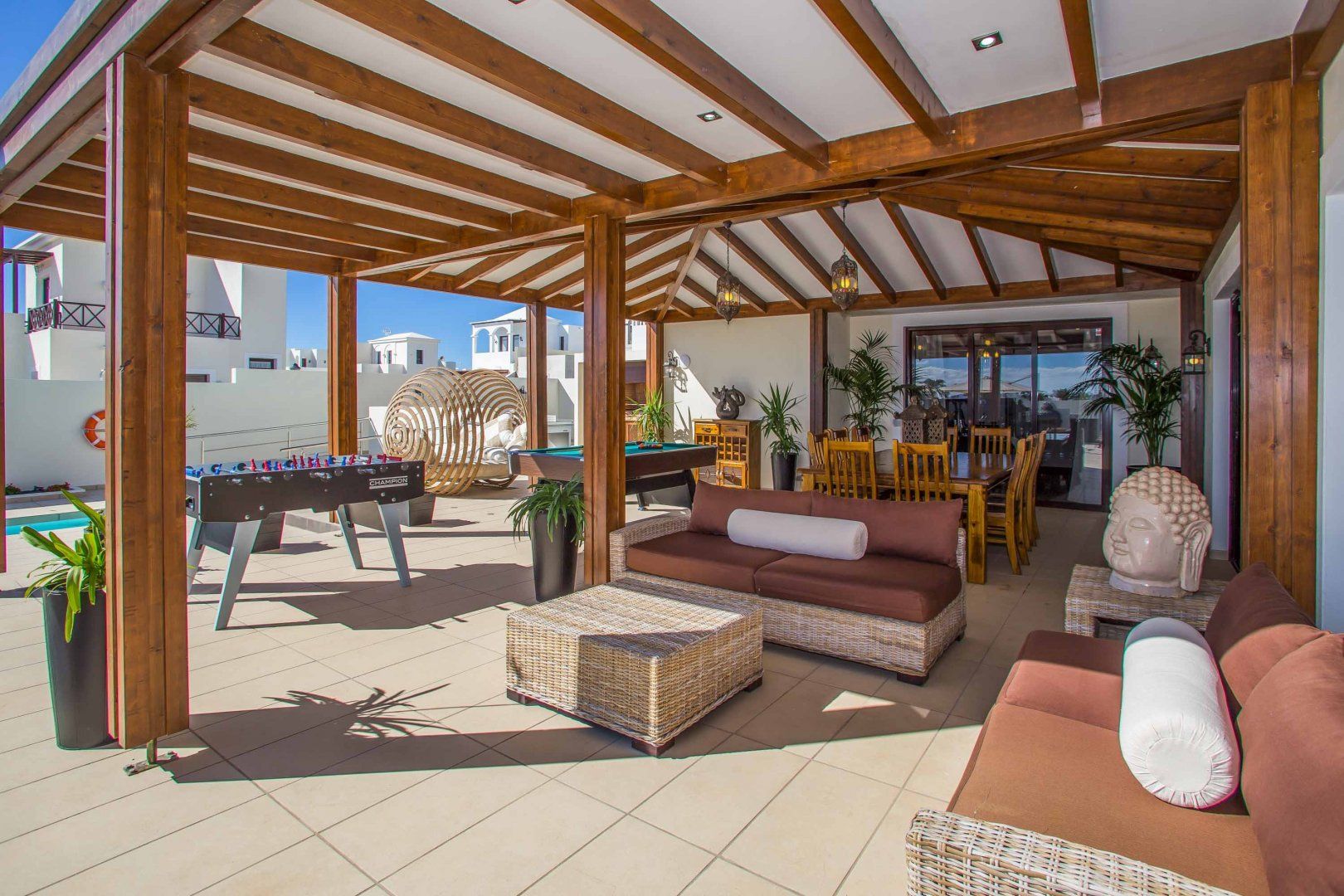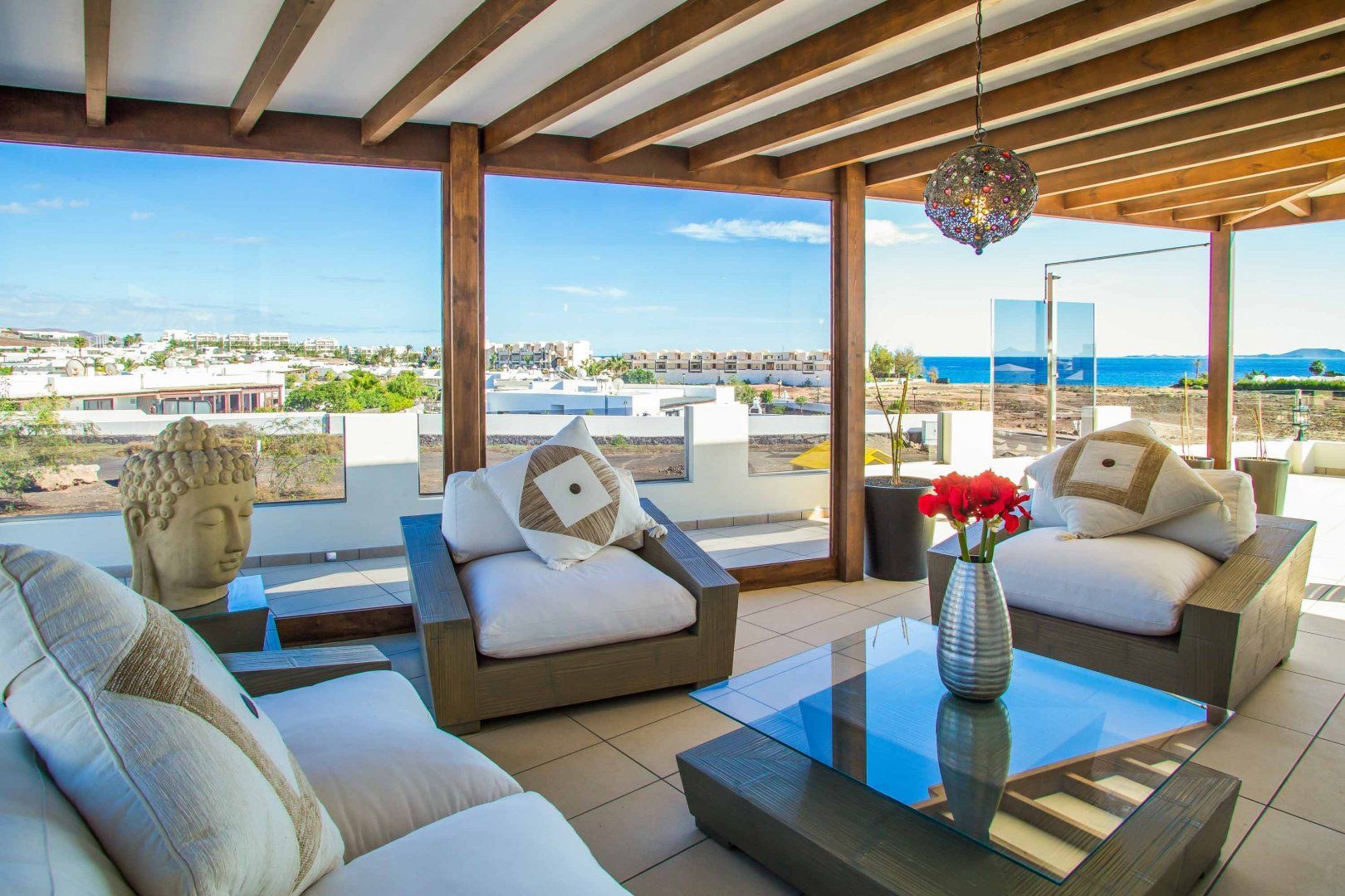 Nestled on Lanzarote's southern tip, this villa is perfect for a laid-back escape in Playa Blanca. Suitable for families, this home has two children’s rooms and an outside play area – sure to keep kids busy while you fit in a workout in the gym. A real highlight is the outside terrace, complete with plenty of seating for socialising and a large pool and separate hot tub for ultimate relaxation. When you’re ready to head out and about, three wonderful beaches with one backed by a restaurant-filled promenade can be reached within a fifteen-minute walk. While Timanfaya National Park is 20 kilometres away for a day out amongst Lanzarote’s spectacular volcanic landscape.
