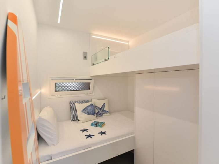 "Aida 206", 3-room apartment 62 m2 on 2nd floor. Comfortable and modern furnishings: living/dining room with dining table, satellite TV, digital TV and air conditioning. 1 room with 1 french bed. 1 room with 1 x 2 bunk beds. Open kitchen (dishwasher, 3 ceramic glass hob hotplates, toaster, kettle, microwave, electric coffee machine).