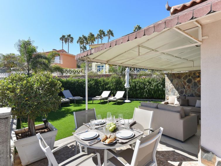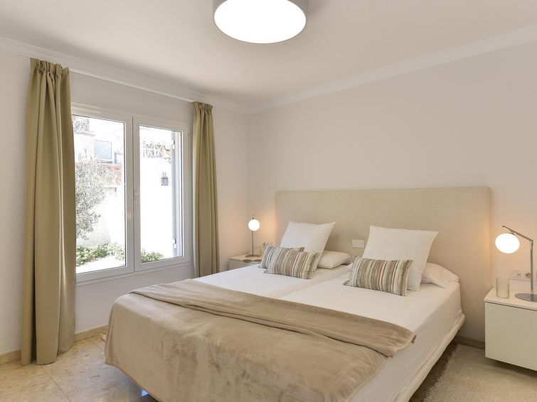"Chalet Santa Ana 19", 4-room house 140 m2. Comfortable and modern furnishings: living/dining room with dining table, digital TV and air conditioning. Exit to the patio. 1 room with 2 beds and air conditioning. Exit to the patio. 1 room with 1 french bed. 1 room with 2 beds. Kitchen (oven, dishwasher, 3 ceramic glass hob hotplates, toaster, kettle, microwave, freezer, electric coffee machine).