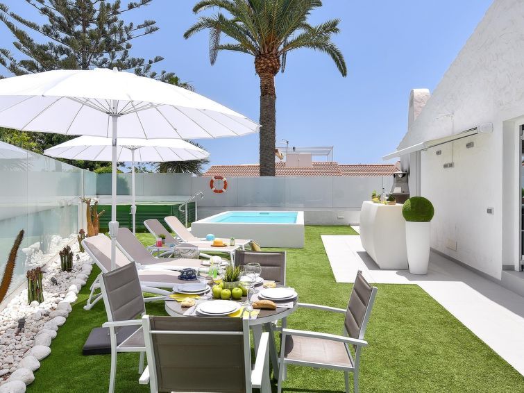 "Playa del Ingles MC", 3-room apartment 97 m2, on the ground floor. Comfortable and modern furnishings: living/dining room with satellite TV, digital TV and air conditioning. 1 double bedroom with 2 beds. 1 room with 1 double bed. Kitchen-/living room (oven, dishwasher, 2 ceramic glass hob hotplates, microwave, freezer).