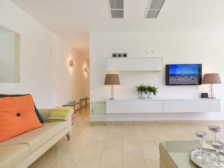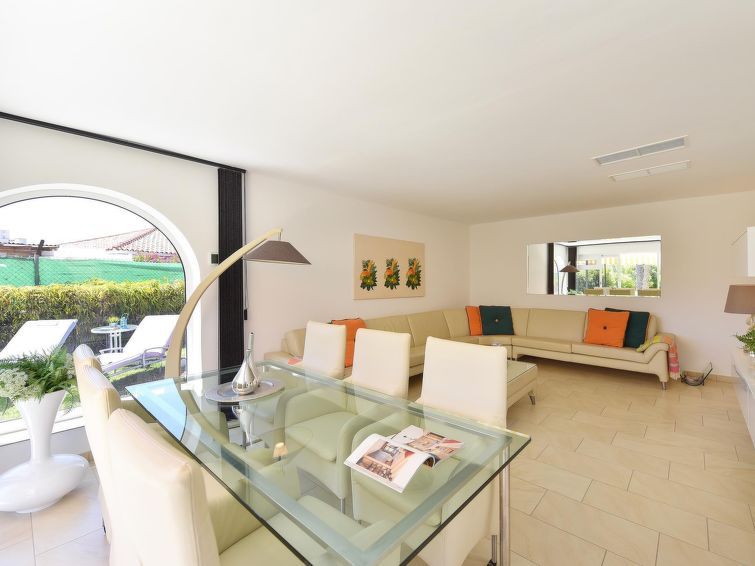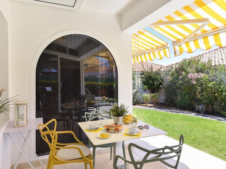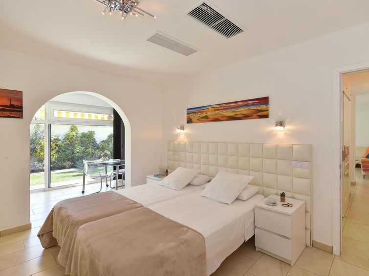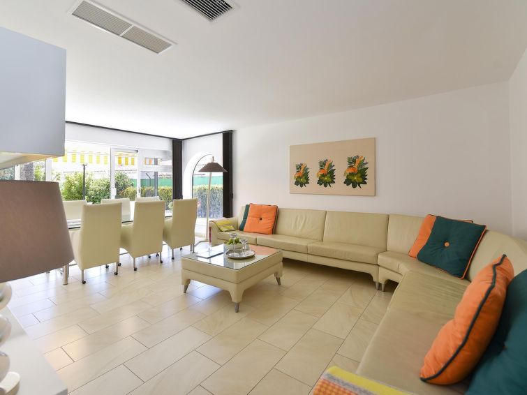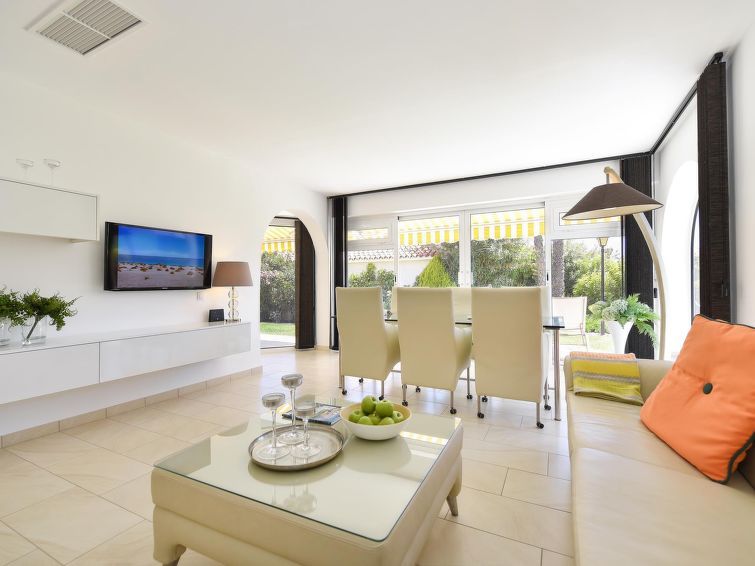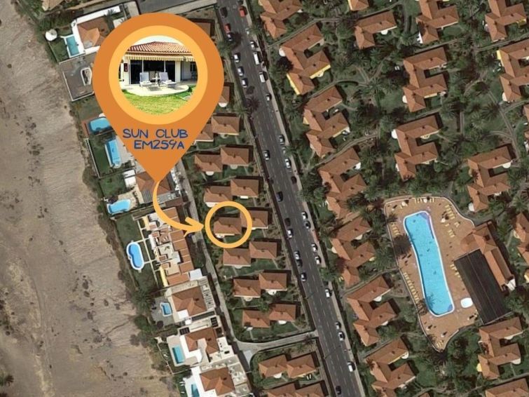 "Sun Club EM259A", 2-room house 80 m2. Simple and comfortable furnishings: living/dining room with dining table, satellite TV, digital TV and air conditioning. Exit to the patio. 1 room with 2 beds and air conditioning. Kitchen (oven, 4 ceramic glass hob hotplates, toaster, kettle, microwave, electric coffee machine).