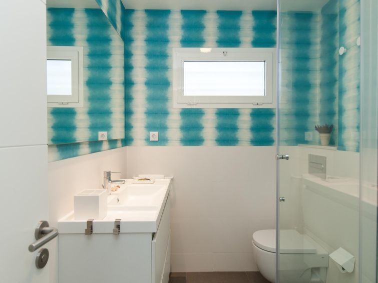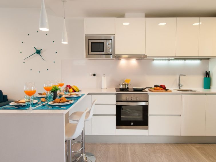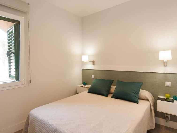 "Aquarius 9", 3-room apartment 60 m2, on the ground floor. Comfortable and cosy furnishings: living room with 1 french bed, satellite TV, digital TV and air conditioning. 1 room with 1 french bed and air conditioning. 1 room with 1 x 2 bunk beds, 1 pull-out bed (1 pers.). Open kitchen (oven, 3 ceramic glass hob hotplates, toaster, kettle, microwave, freezer, electric coffee machine) with dining table.