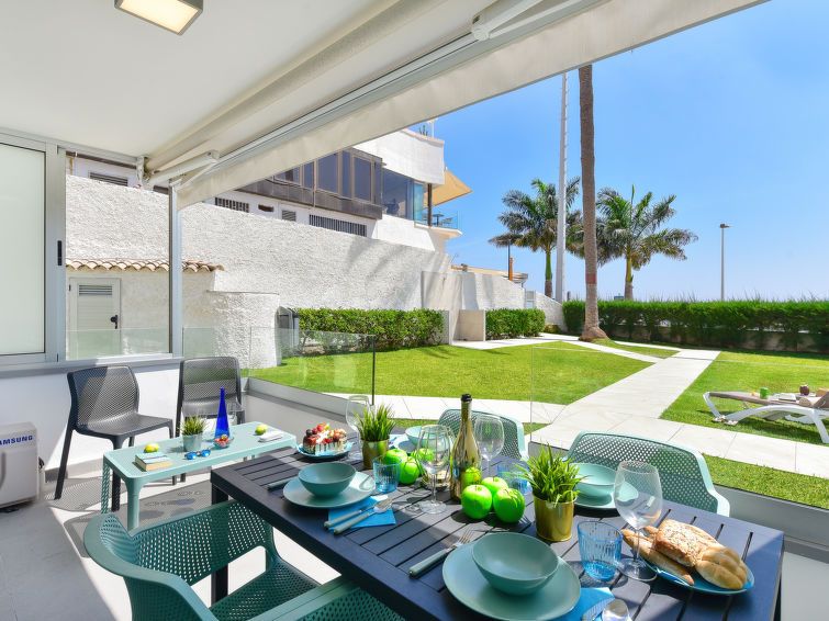 "Las Nasas 1", 3-room apartment on the lower ground floor. Object suitable for 4 adults. Bright, practical furnishings: living room with digital TV, flat screen and air conditioning. Exit to the terrace. 1 double bedroom with 1 french bed. 1 double bedroom with 2 beds with shower/WC.