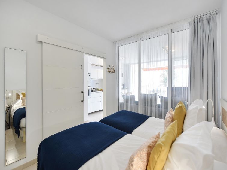 "Puerto Chico 30", 2-room apartment 38 m2. Object suitable for 2 adults. Bright, very practical and tasteful furnishings: living/dining room with TV, flat screen and air conditioning. Exit to the terrace. 1 room with 2 beds. Open kitchen (oven, 4 ceramic glass hob hotplates, toaster, kettle, microwave, electric coffee machine).