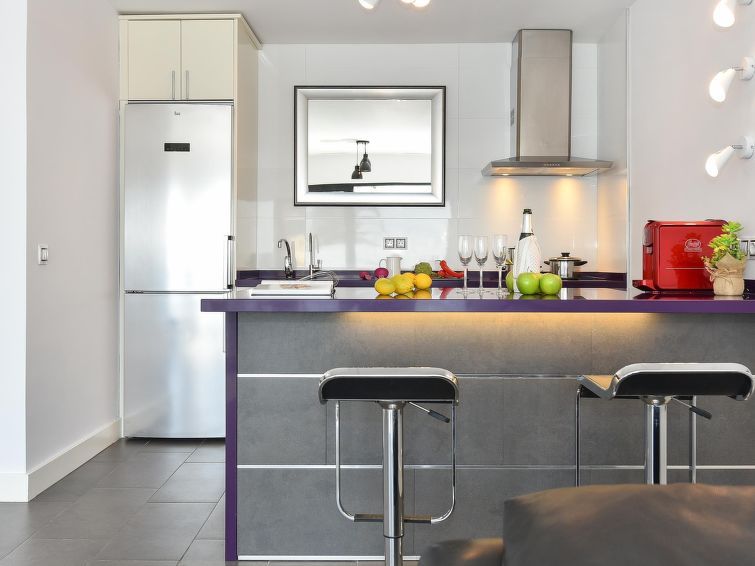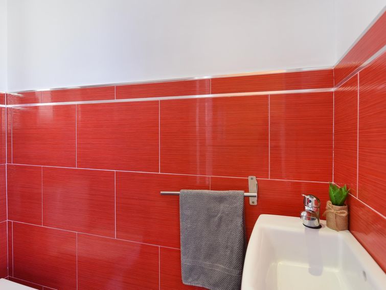2-room apartment 60 m2, on the upper floor. Comfortable and cosy furnishings: living room with dining nook, satellite TV, cable TV, digital TV and air conditioning. Exit to the balcony. 1 room with 1 french bed and air conditioning. Open kitchen (oven, dishwasher, 3 ceramic glass hob hotplates, toaster, kettle, microwave, freezer, electric coffee machine).