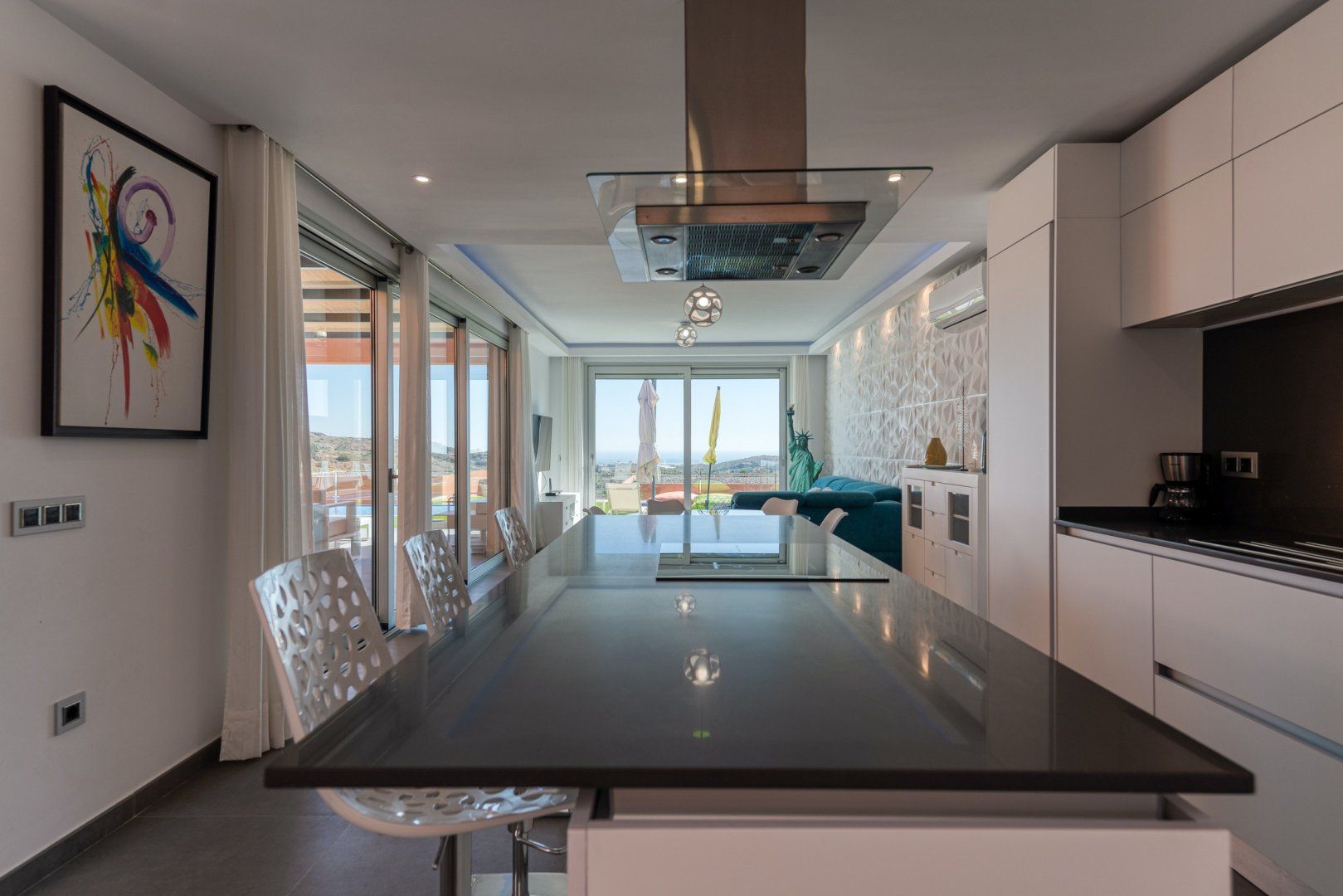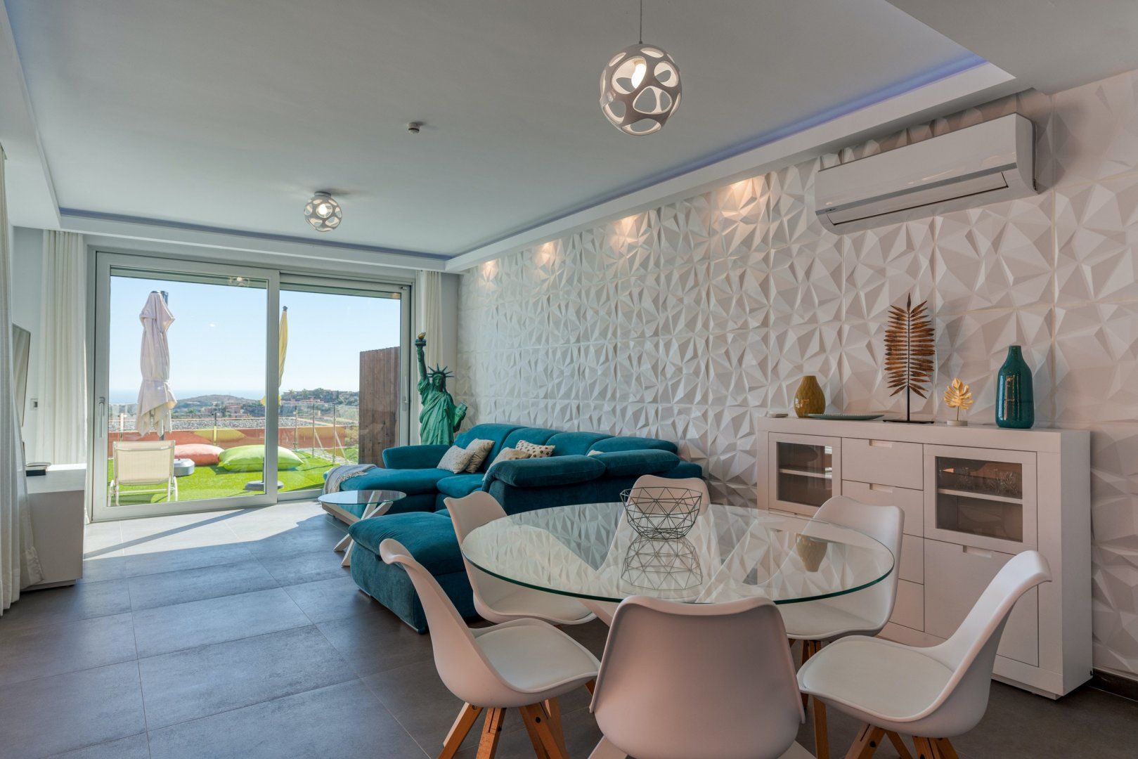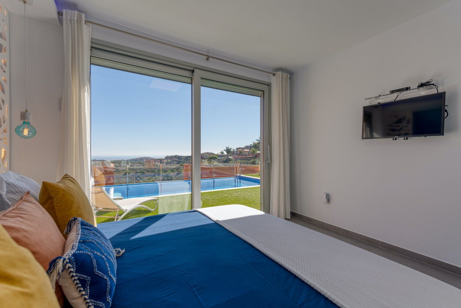 Overlooking a lush green golf course and the sparkling Atlantic Ocean, this nectarine-coloured villa is the definition of a tropical escape. We could spend all day here lolling about on the terrace, admiring those views – all that's missing is a refreshing cocktail and a magazine. For catnaps in the fresh air, there's no better spot than the Balinese bed, while the heated swimming pool is the perfect place to cool off on sweltering summer afternoons. The whole villa faces west to make the most of the sunshine – as such, it's no surprise that the sunsets here are pretty spectacular. We think they pair best with grilled seafood (locally sourced, of course) and a bottle of Gran Canarian white wine, all enjoyed alfresco as the night rolls in.